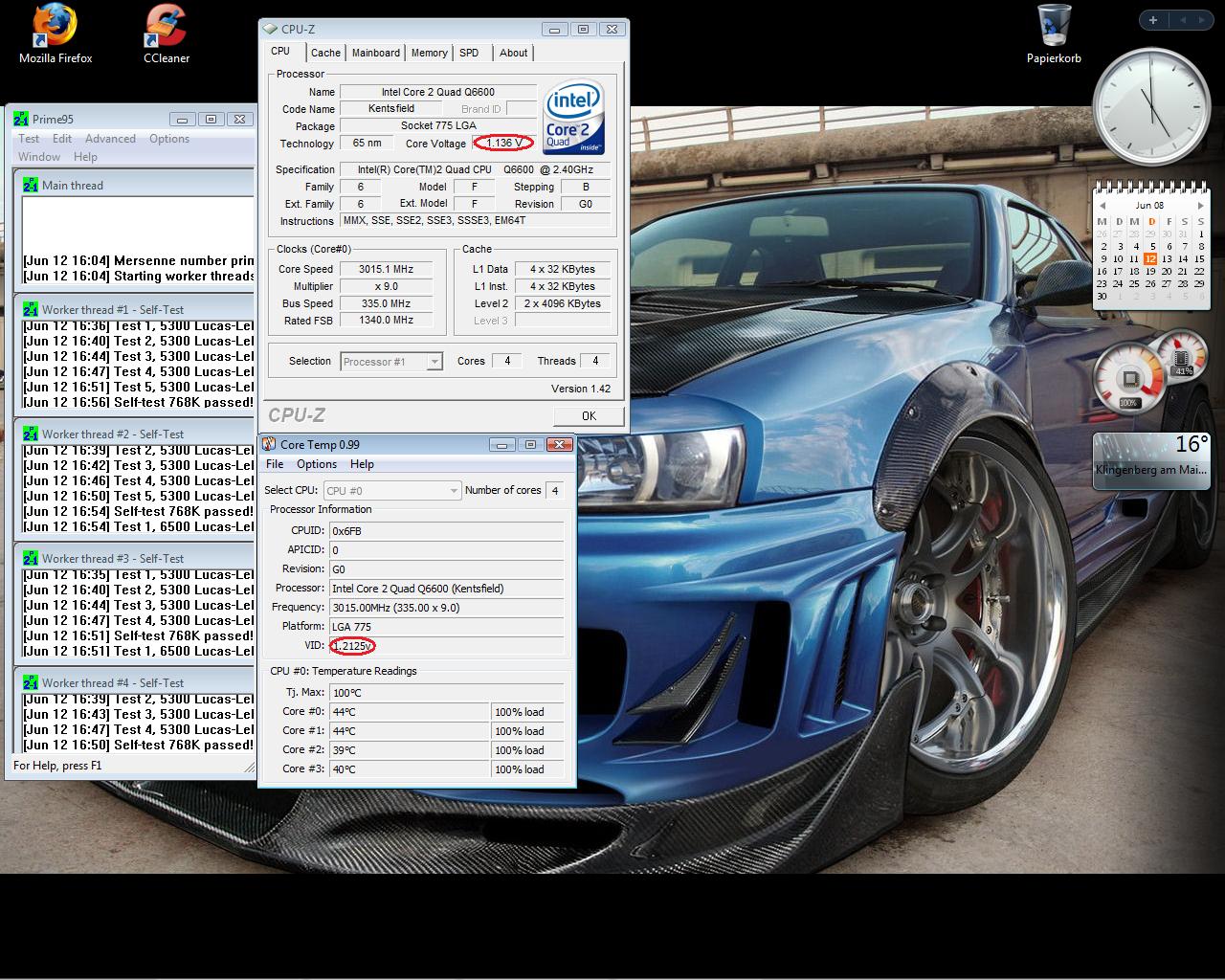 untere Grenzen, bei denen meine CPUs Boinc-stabil laufen, nicht prime-stabil, für mich ist natürlich die Praxis bedeutsam und Temperatur-Entwicklung, zumal ein Q6600 wg. Midi-Gehäuse/mangels Platz wieder mit boxed-Kühler läuft