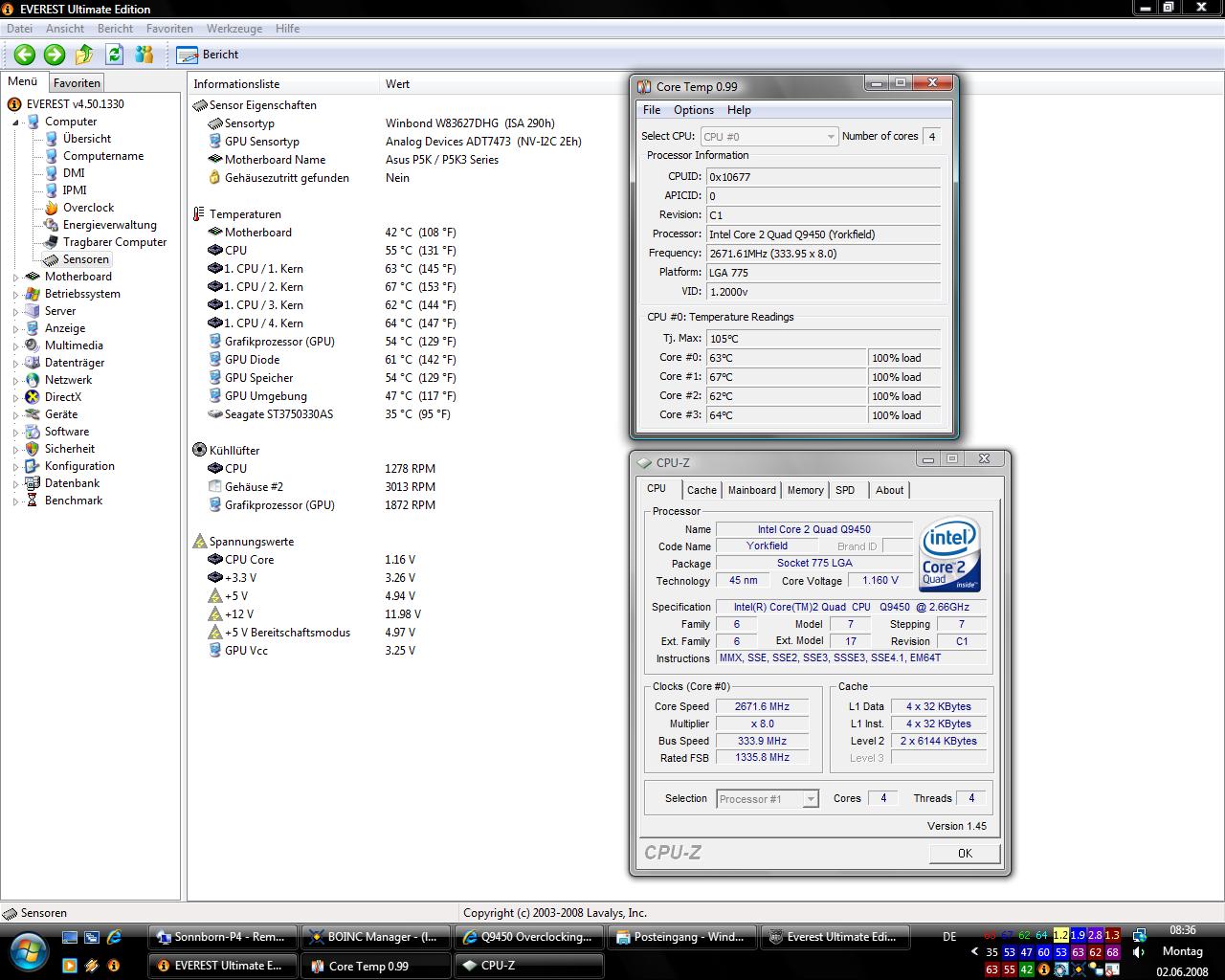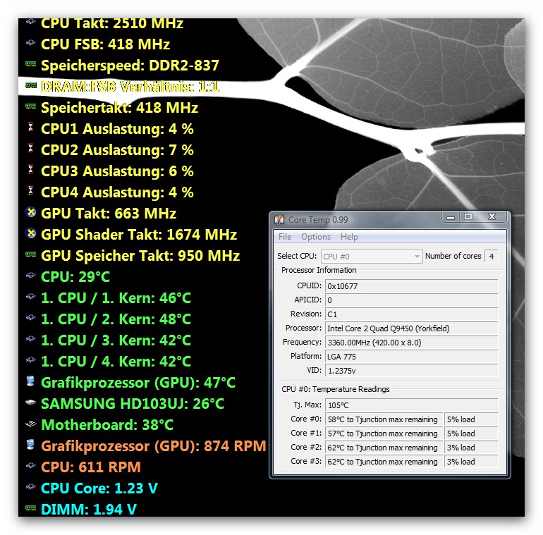 mein 9450 leuft auch auf 3,2 ghz mit max temps von 52°