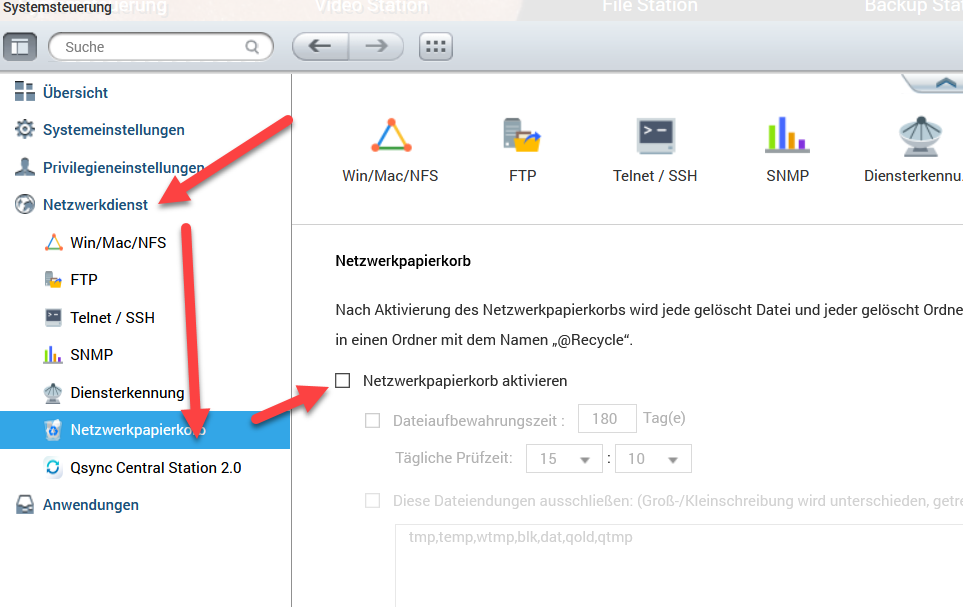 Auf dem NAS ist der Papierkorb deaktiviert. Ist auch nicht mehr zu sehen.