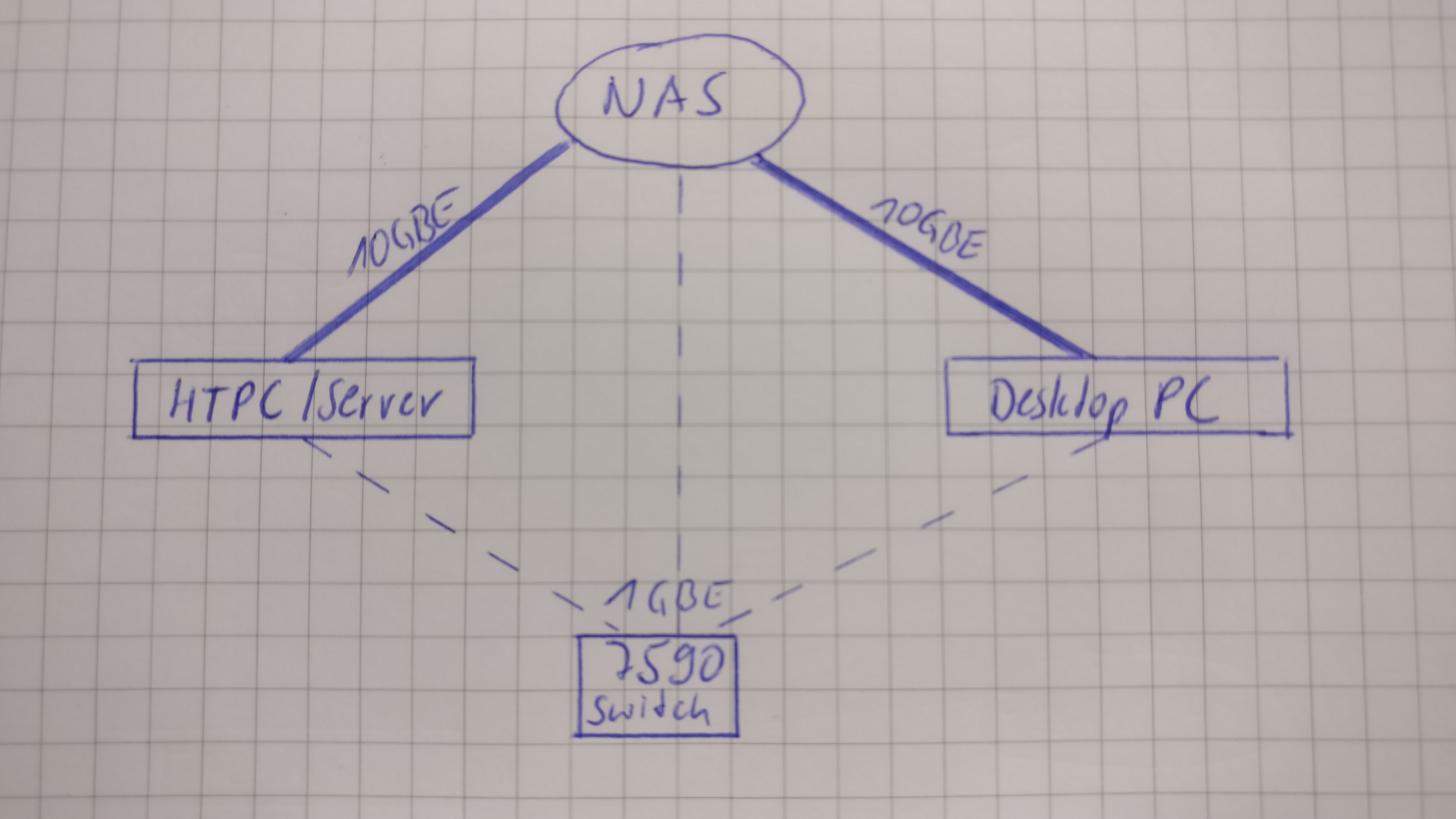 nein, nur 2 Stück 10GE Karten. Aber du hast natürlich recht. Es könnte ja so wie auf der Skizze aussehen. WOL für die NAS sollte dann ja weiterhin über den normalen GB Anschluss der NAS funktionieren, der extra dafür am Router hängen würde. Oder?