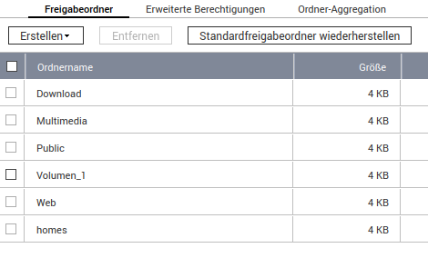 Zu meinem Post von letztens, habe ich hier neben Synologie auch noch ein QNAP TS-420 stehen. Dieses beherbergt 4x 4TB Seagate Platten. Im File Manager kann ich einzelne Ordner freigeben, finde aber leider keine Möglichkeit ein ganzes Volumen zur Verfügung zu stellen.