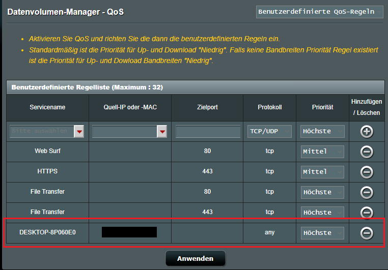 Ich wollte mal nachfragen, ob die Einstellung(en) für meinen Desktop PC im QoS meines ASUS DSL AC68VG passen?