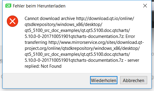 Hallo Leute, hab eine frage die weniger in die Programmierung geht. Da ich nicht so recht wusst, in welchem Unterforum es ansonsten kommen würde, schreibe ich es hier. Bei der QT installation, mit dem online installer, bekomme ich ständig folgende Fehlermeldung: