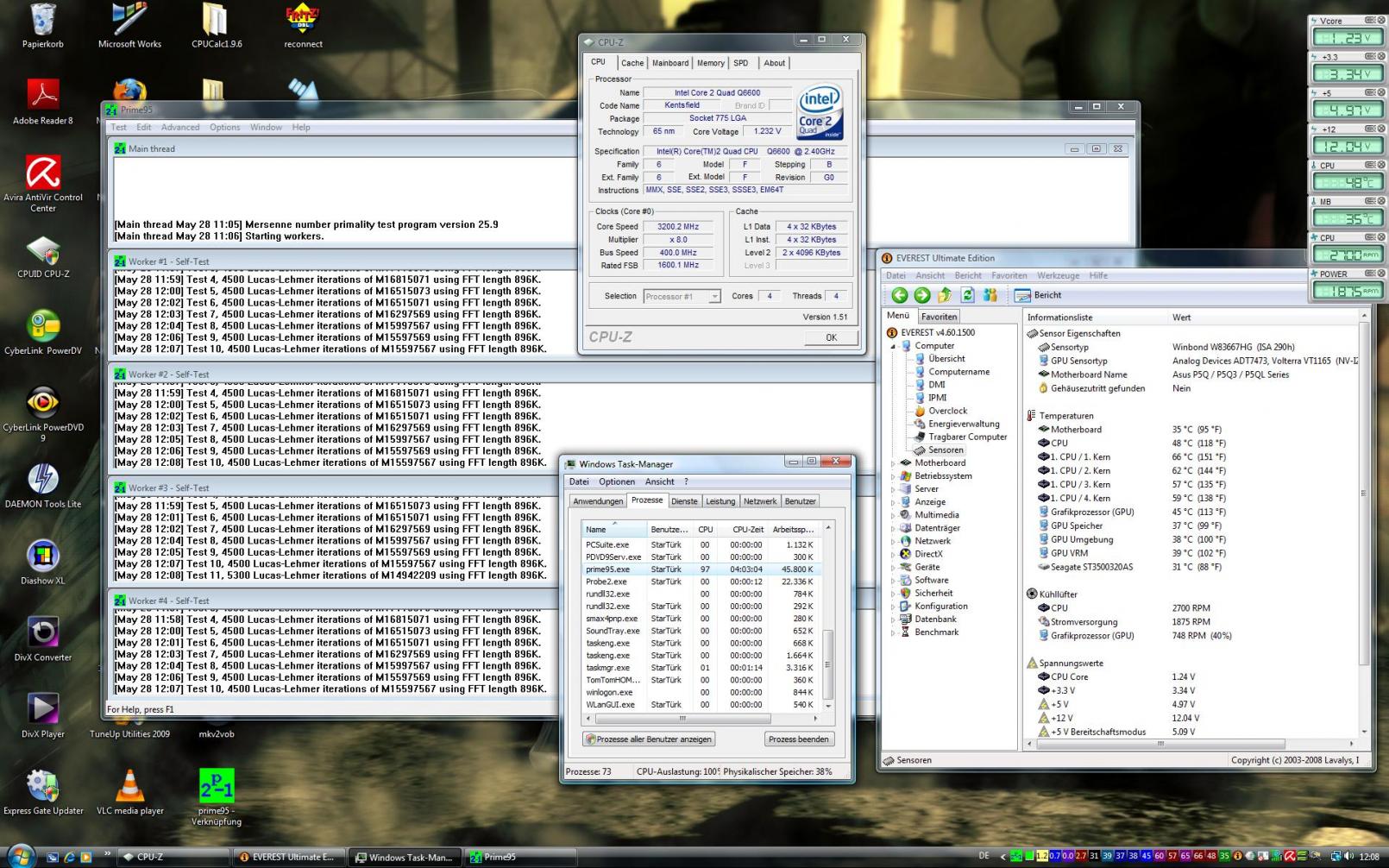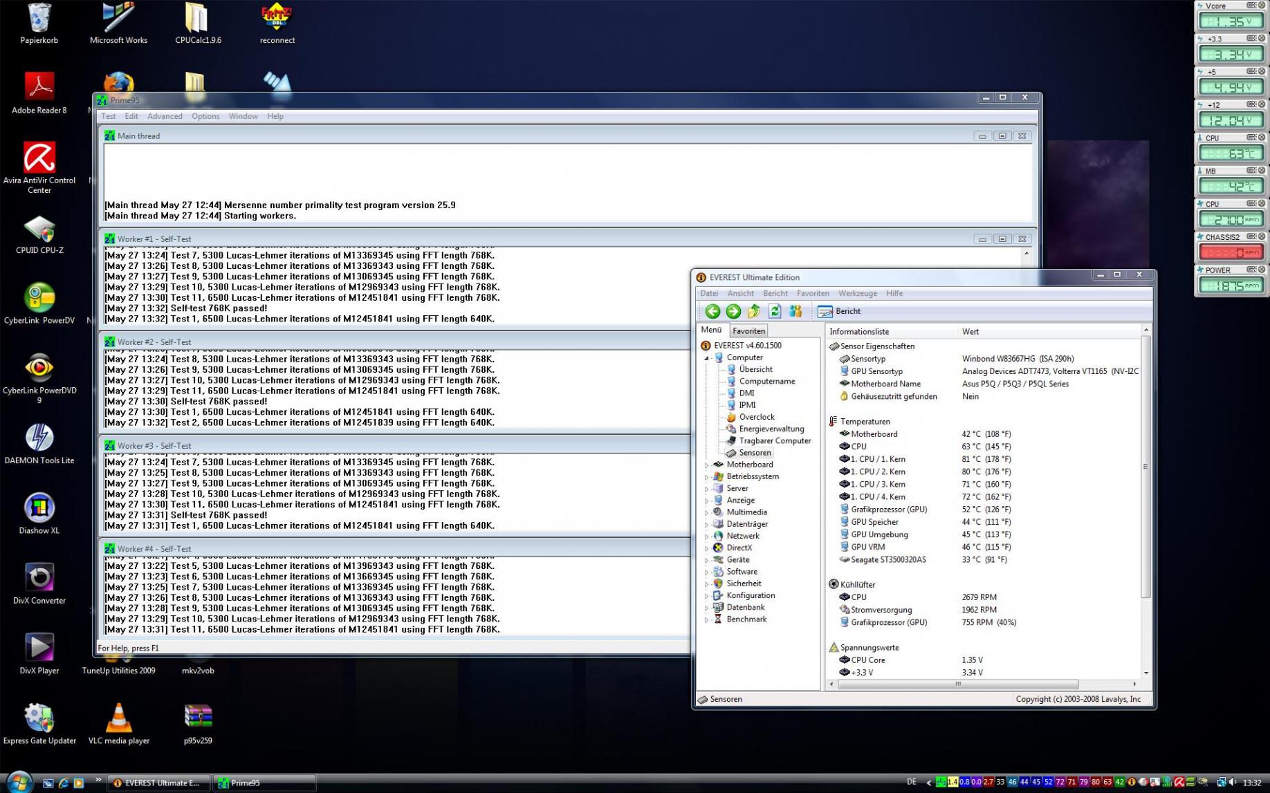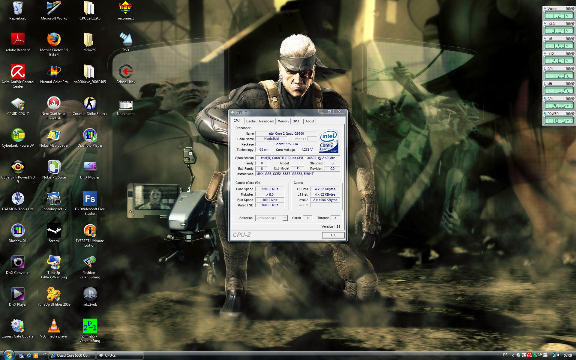 Nur unter Normal CPU Voltage zeigt das Ding schon 1,325V an.Auch wenn ich alles auf Auto stelle, zeigt er diese Spannung an... Also mehr wie die von dir beschriebene Spannung....Ich weiß, das manche auch mit 1,225 Default laufen, aber nicht meiner... der steht auf Default 1,325V. Darum hab ich ja auch schon 1,425V eingestellt... 0,1V mehr...damit es wenigstens geht.. wenn ich weniger wie 1,4 einstelle, bootet kein XP oder Vista mehr...