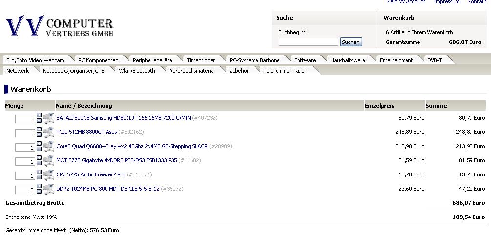 Kumpel von mir plant ein neues System, bzw. sein erste gescheites^^. Eigentlich hasse ich die Anfänge mit Kumpel von mir bzw. meine mum.... naja^^ Eigentlich wollten wir mit etwa 1000 Euro hinkommen, aber ich glaub jetzt sind ca. 1200. Schauts euch einfach mal an, preis von alternate.
