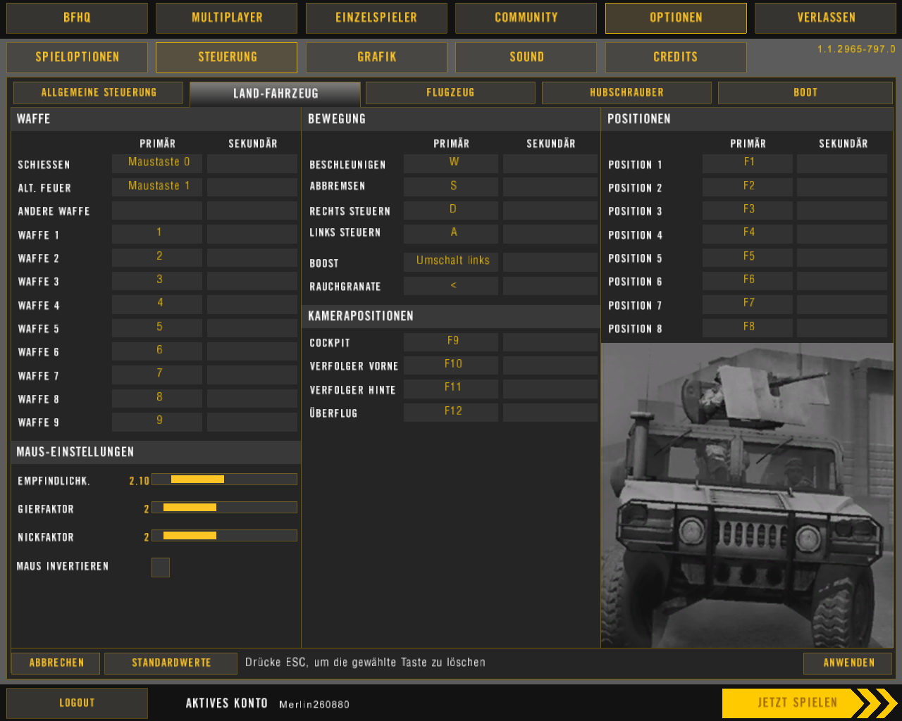 sonst gehts wie gesagt überall, und alle mauseinstellmöglichkeiten von allgemein über fahrzeuge, flugzeuge, helicopter und boote werden angenommen und gehen wie immer.