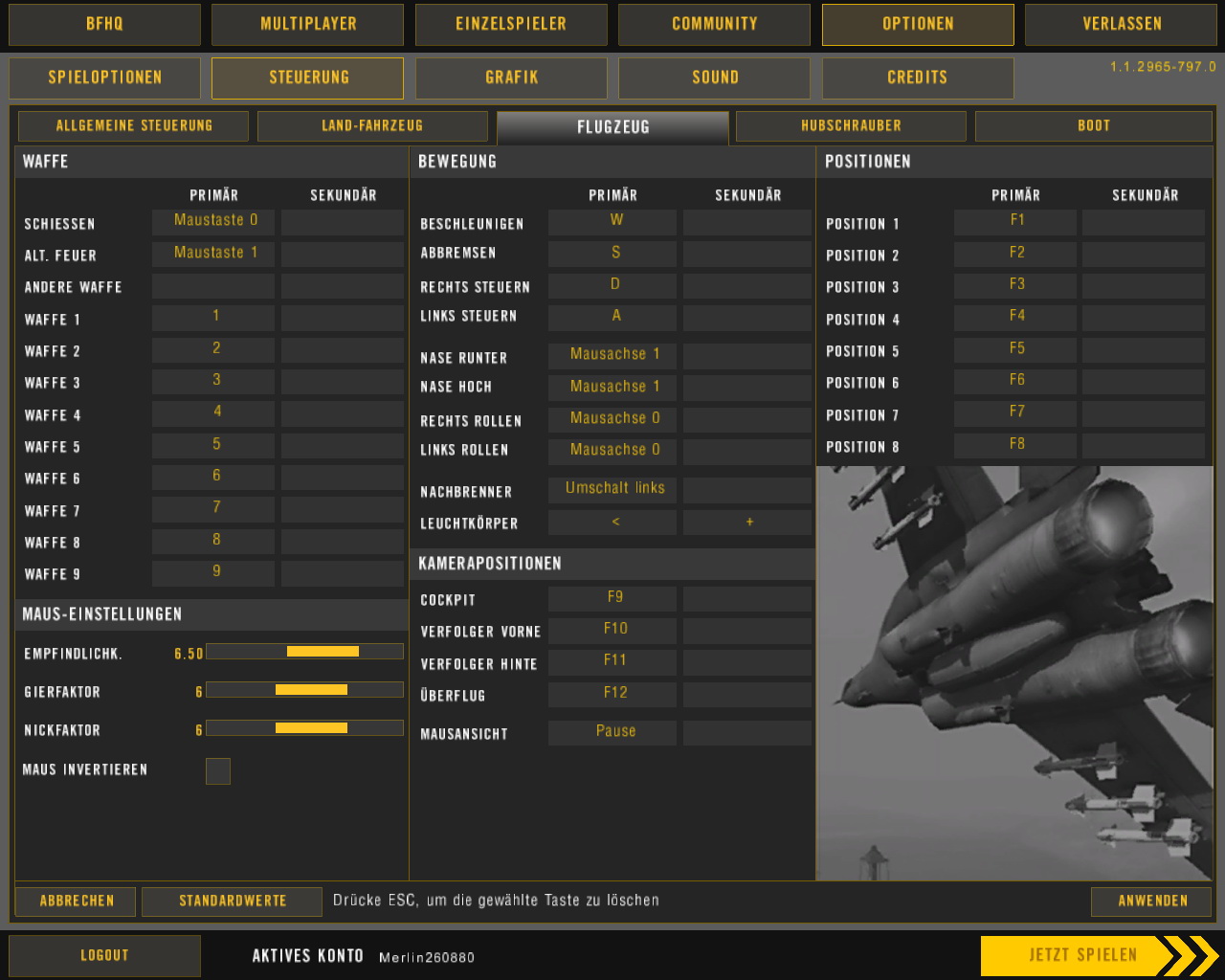 nur - und jetzt kommt mein problem - ist die maus ingame im eingabefenster ( squadübersicht und map rechts ) deutlich langsamer als im spiel. leider gilt das auch für die TV-Missile im helicopter.