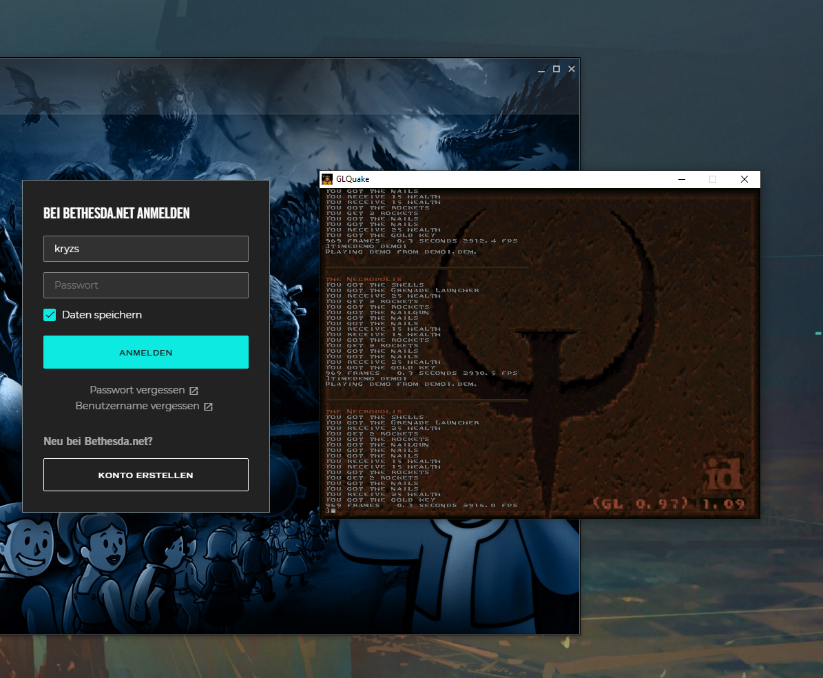 Da sich die Original Quake (1) Version von CD unter Windows 10 nicht installieren lässt, kann man den Umweg über den Bethesda Launcher nehmen und stellt (wie ich finde) den schnellsten Weg dar, Quake auf einem Windows 10 System zu installieren. Aber es gibt auch andere Möglichkeiten, zB.: über DosBox, aber auch über Steam ist es möglich und wie unten im Beispiel, lässt sich Quake auch ohne Steam starten.
