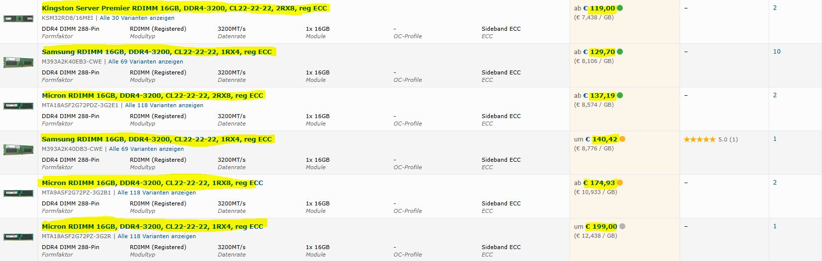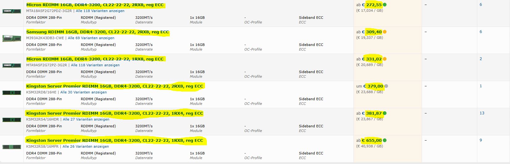 Da würde ich mich auf dem Gebrauchtmarkt umschauen. DDR4 ECC Reg bekommt man da im Vergleich teils noch spottbillig.