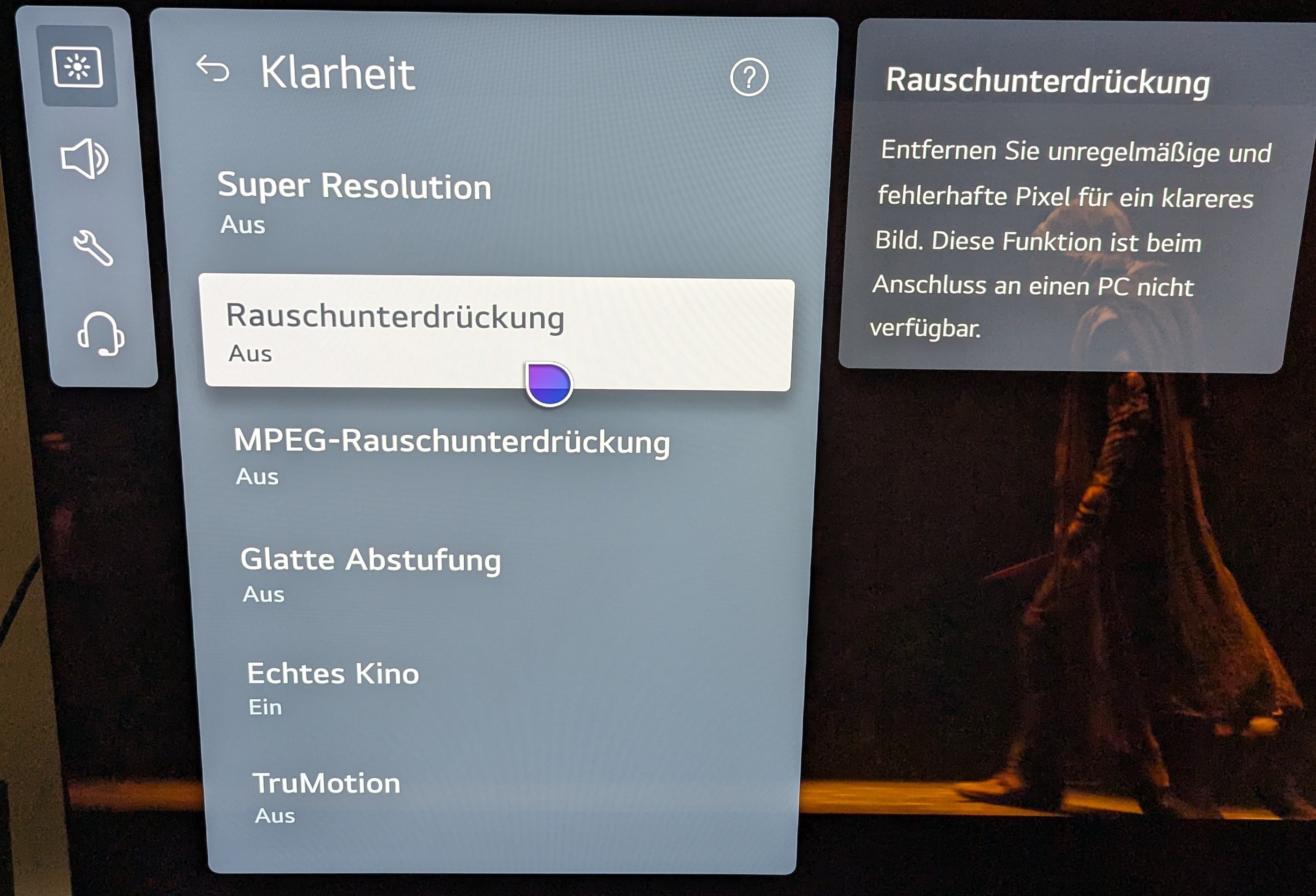 Dabei meinte ich zu sehen, wenn ich vorne am Fernseher stehe, dass das Bild doch etwas "rauscht".
