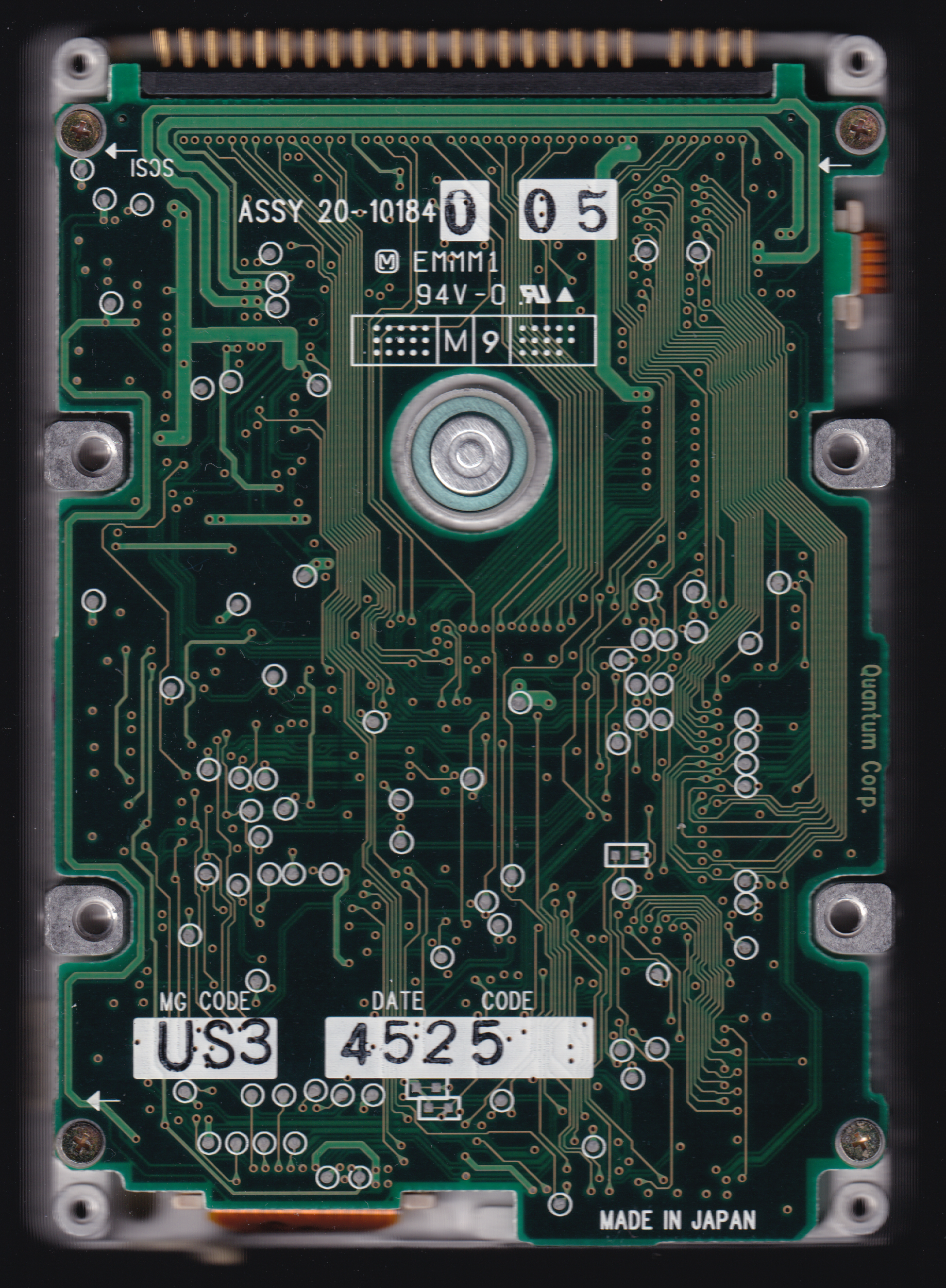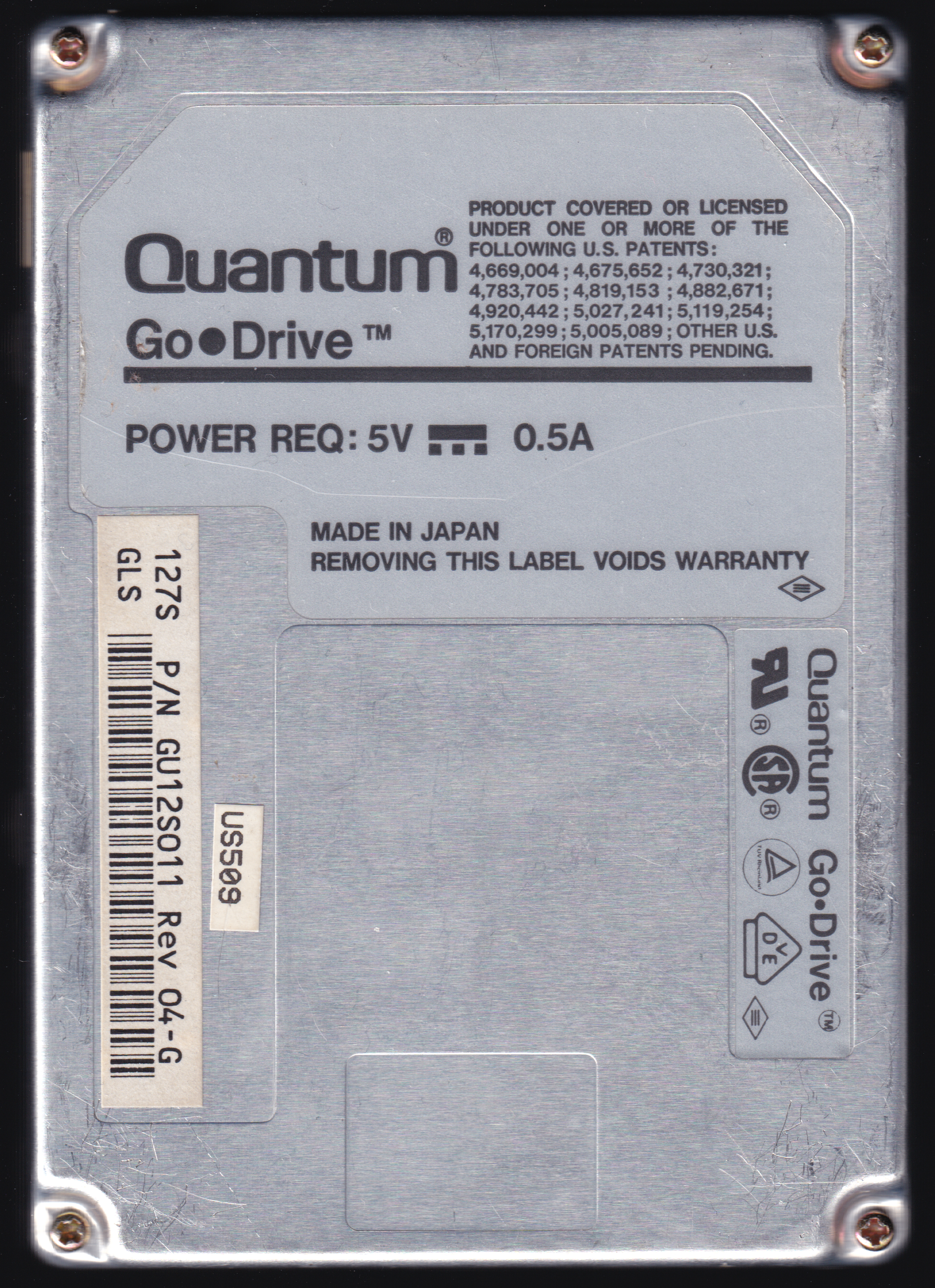 Die Festplatte ist vom Modell "GU12S011 Quantum Go-Drive GLS 127MB 3600RPM SCSI 50-Pin 96KB Cache 2.5-Inch".