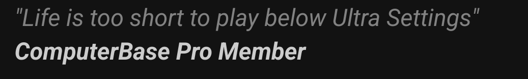 Spaß am Hobby sieht halt allgemein anders aus und das bieten Konsolen um ein vielfaches unbeschwert mehr.......dieses stumpfsinnige "Masterrace, ich spiel nur in 8k 300fps @ Max" Getue interessiert niemanden außerhalb dieser Bubble.