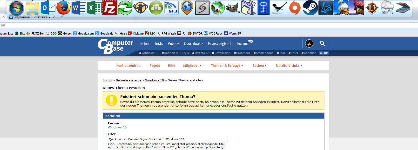 Nein, du machst dir das Problem hier selbst. Oft genutzte Programme willst du nicht anpinnen, obwohl du sie bereits in Reihenfolge und Form im Dock vorliegen hast. Dann mokierst du dich über ne Schnellstartleiste, die absolut unnütz ist, weil eben ein Icon in der Superbar bereits diese Funktionalität besitzt plus dir bereits alle offenen Fenster preisgibt (siehe auch dieses kleine, schnell übersehbare Dreieck im Dock oberhalb der Icons). Nur Icons willst du anscheinend nicht anzeigen lassen (was vom Dock ja vorgegeben werden würde), aber dann die Beschriftungen anzeigen lassen gefällt dir nicht.