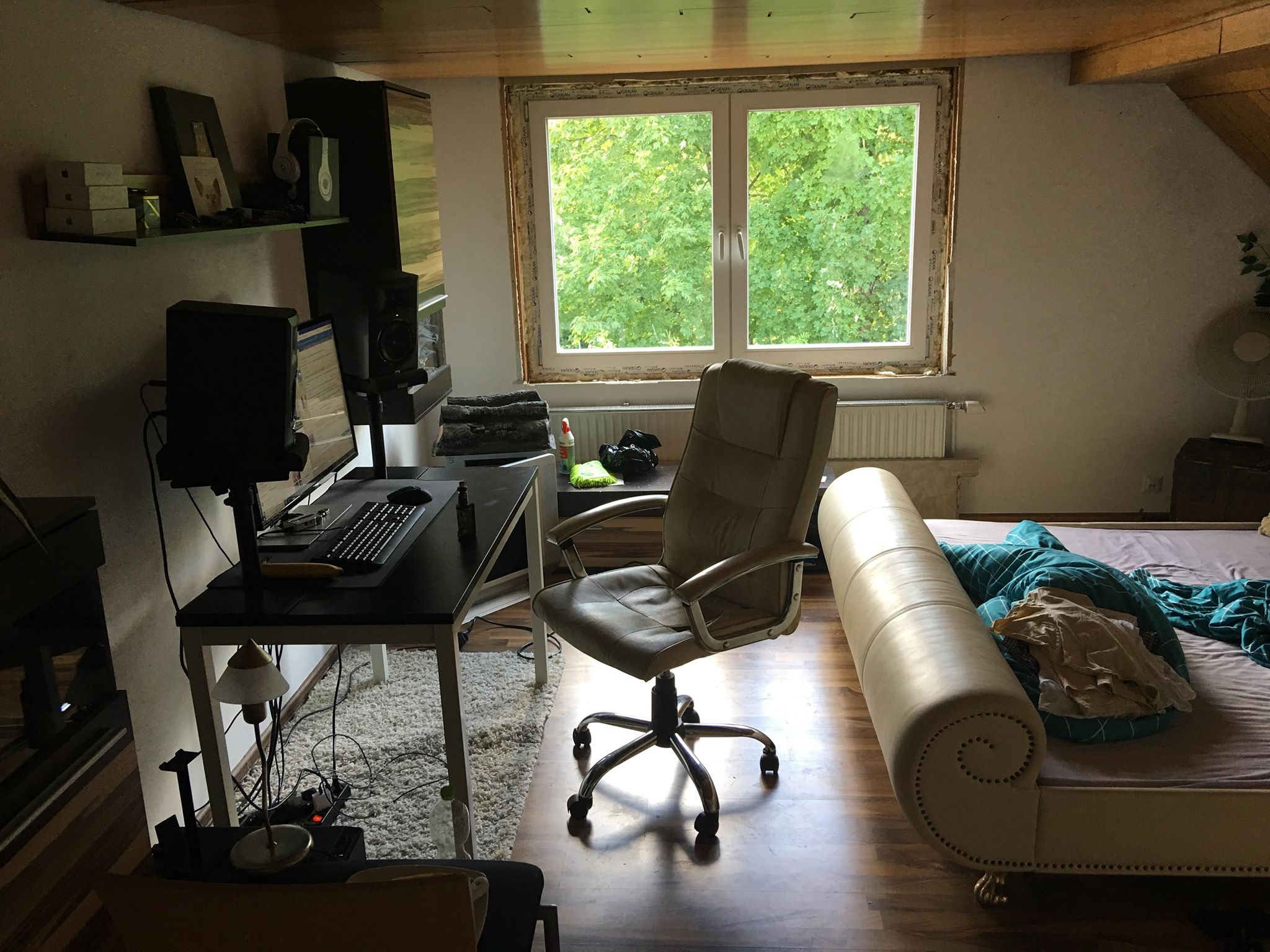 Wenn das alles vom Zimmer ist, was auf den Bildern zu sehen ist, dann hast du da eigentlich keinen Platz für nen Schreibtisch.