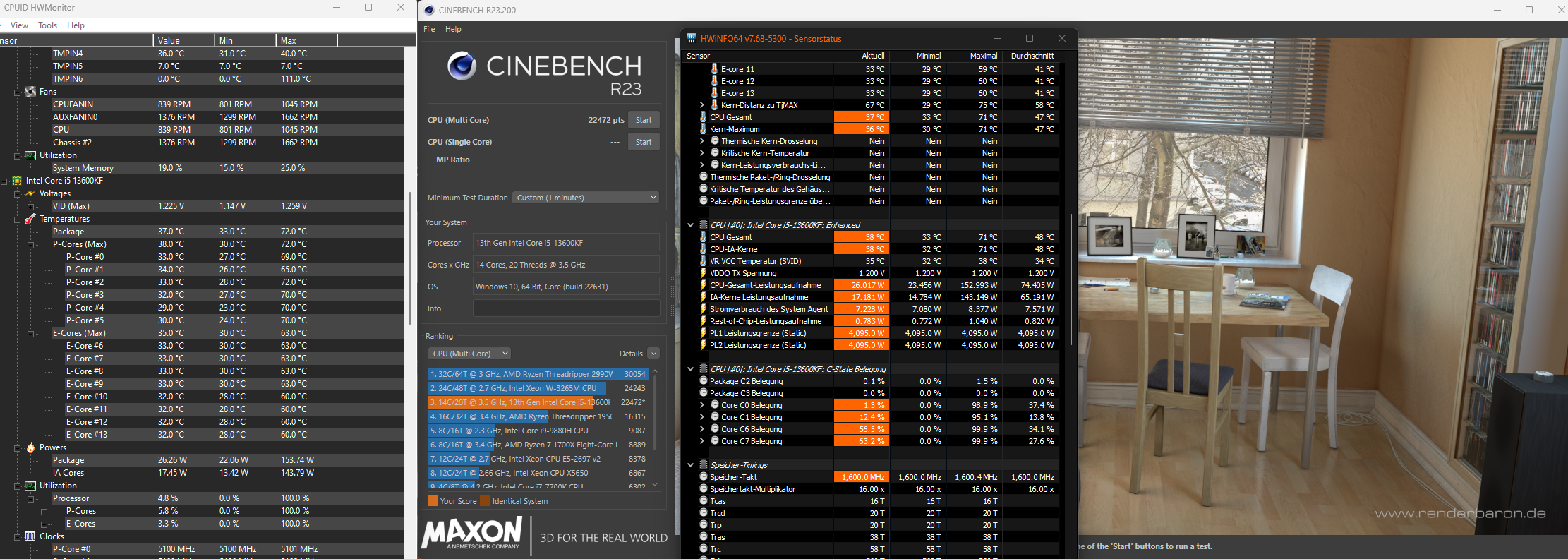 ich habe etwas das netzt durchforstet und gelesen das ein normaler Score für den i5 13600 kf um die 24k im R23 , ich weiß natürlich jetzt nicht ob das stimmt.