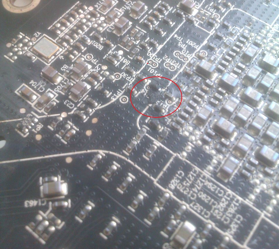 Die Karte wird wenn ich die in den 2. PCIe stecke (meine oben) auch unter DOS nicht mehr angezeigt. Auf der Platine eigentlich auch nix zu erkennen.Bis auf eine ganz kleine schwarze Stelle über dem Chip auf der Oberseite der Platine. Das könnte aber auch ein Rest von dem Schaumstoff der AC3-Backplate sein.(lässt sich aber nicht entfernen)