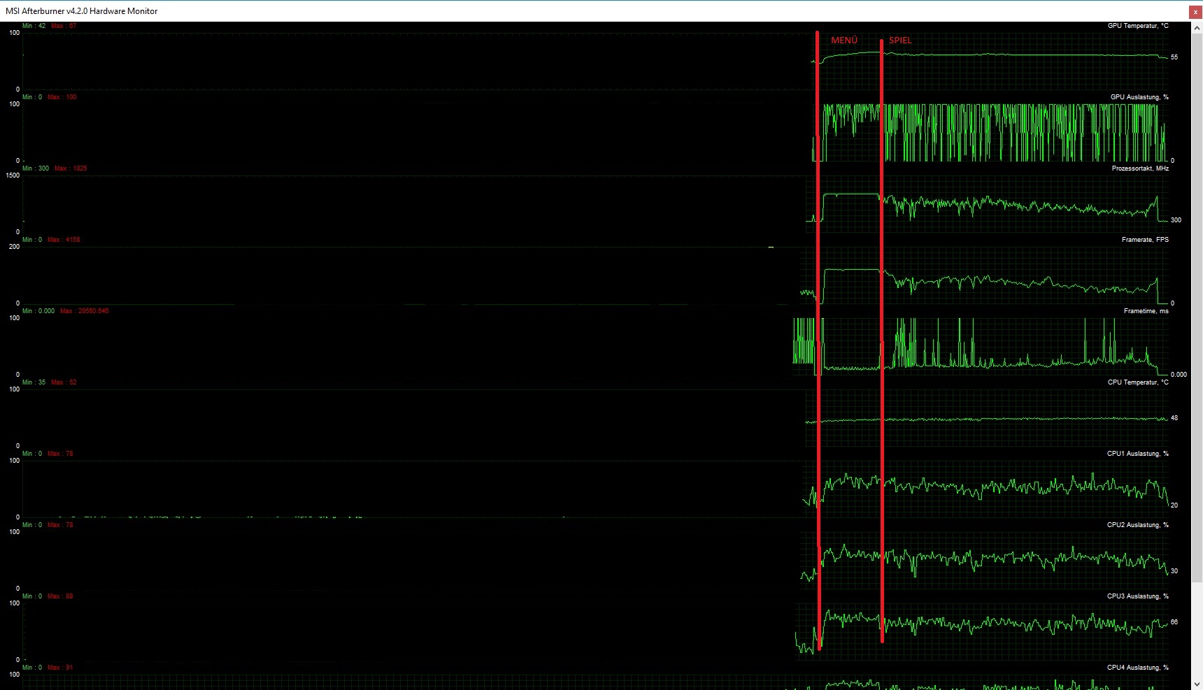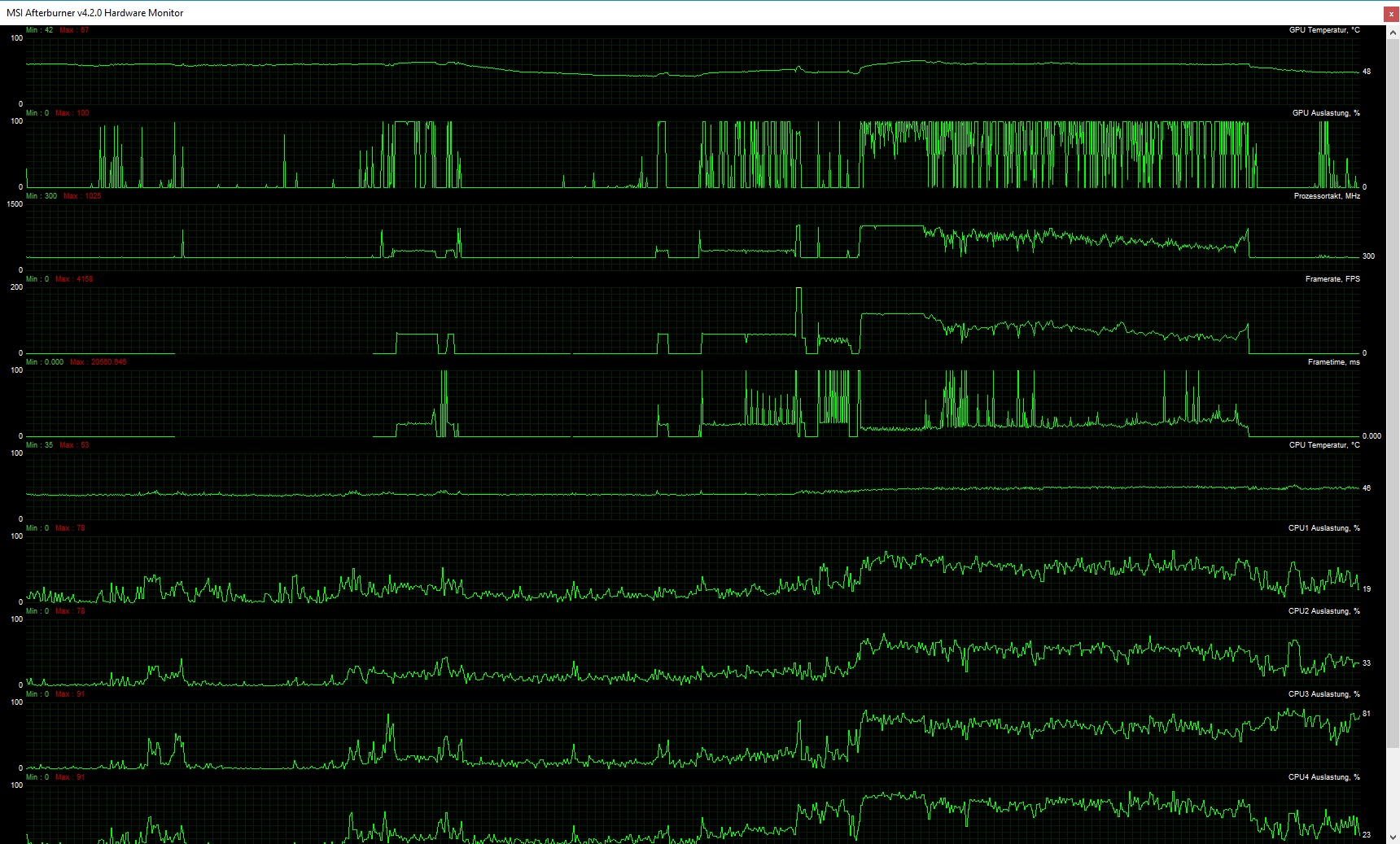 Das kuriose dabei ist, wenn ich das Menü vom Spiel auf mache, dann legt sie los und ist bei 100% (sieht man am Anfang von dem Log). Sobald aber das Spiel anfängt, geht die Auslastung runter, die Karte taktet wegen geringer Auslastung runter und die fps sind dann auch nicht mehr so dolle.
