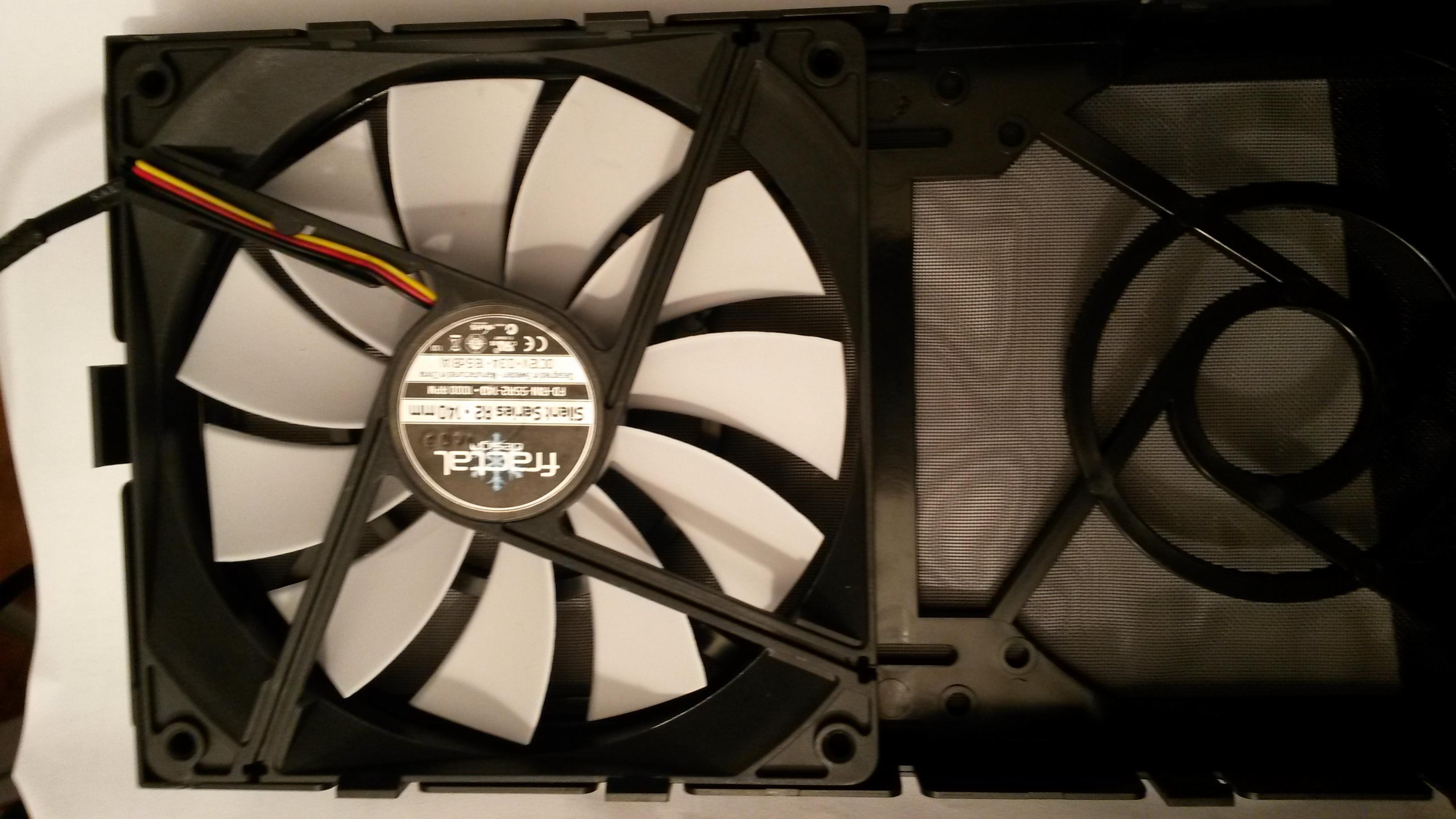 hier sieht man den Lüfter wie er aus der Halterung gerutscht ist: