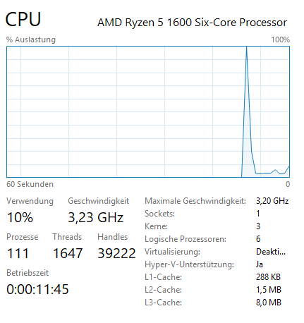 Nach einem geforderten Neustart hatte ich direkt nur noch 3 Kerne aktiv + 3x SMT.