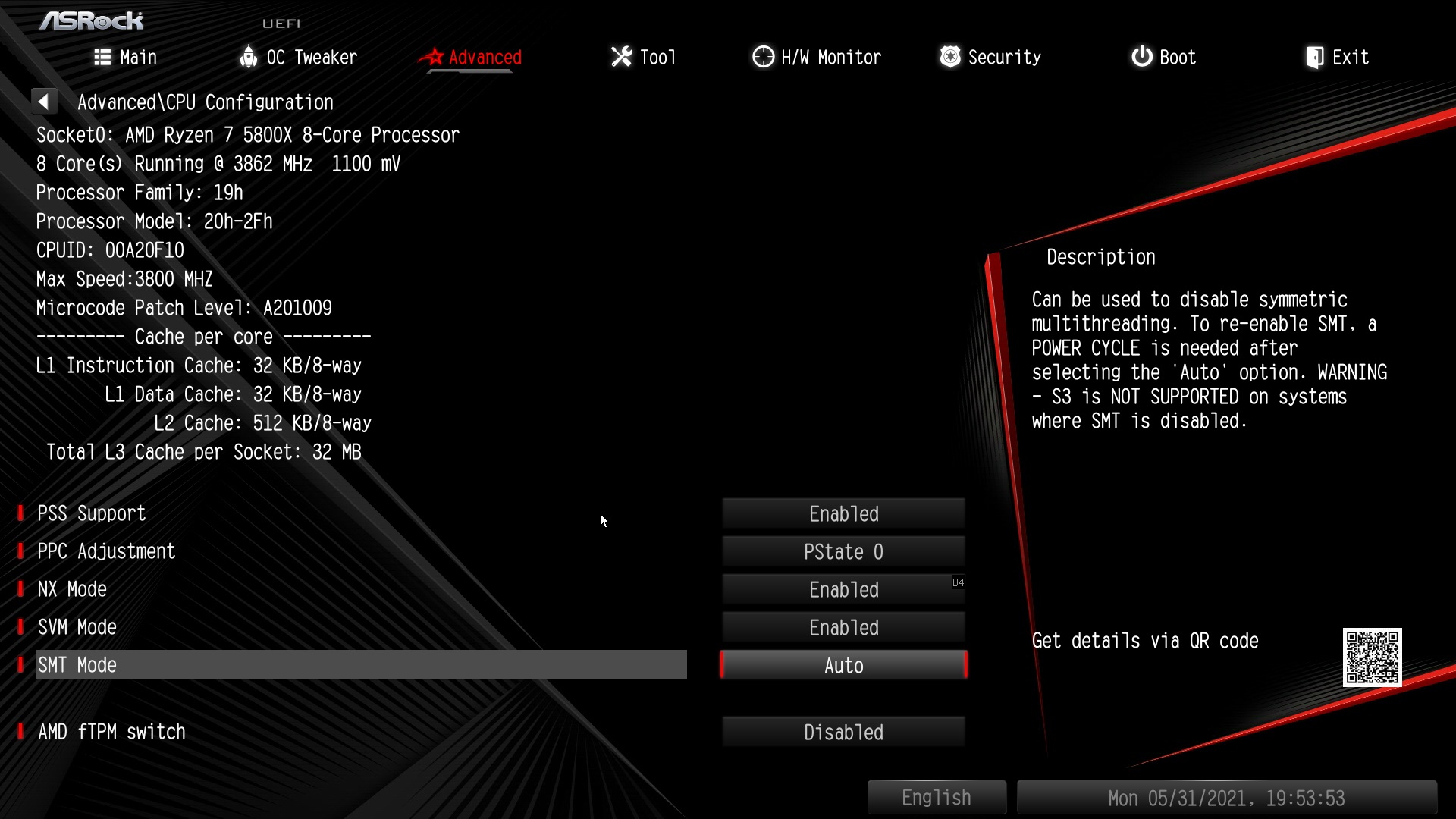Da stelle ich nach dem Biosupdate alles wieder manuell ein. Schaue auch beim SMT, wo ich dort lese das deaktivieren dessen deaktiviert auch den Stromsparmodus, was ja genau mein Problem war.