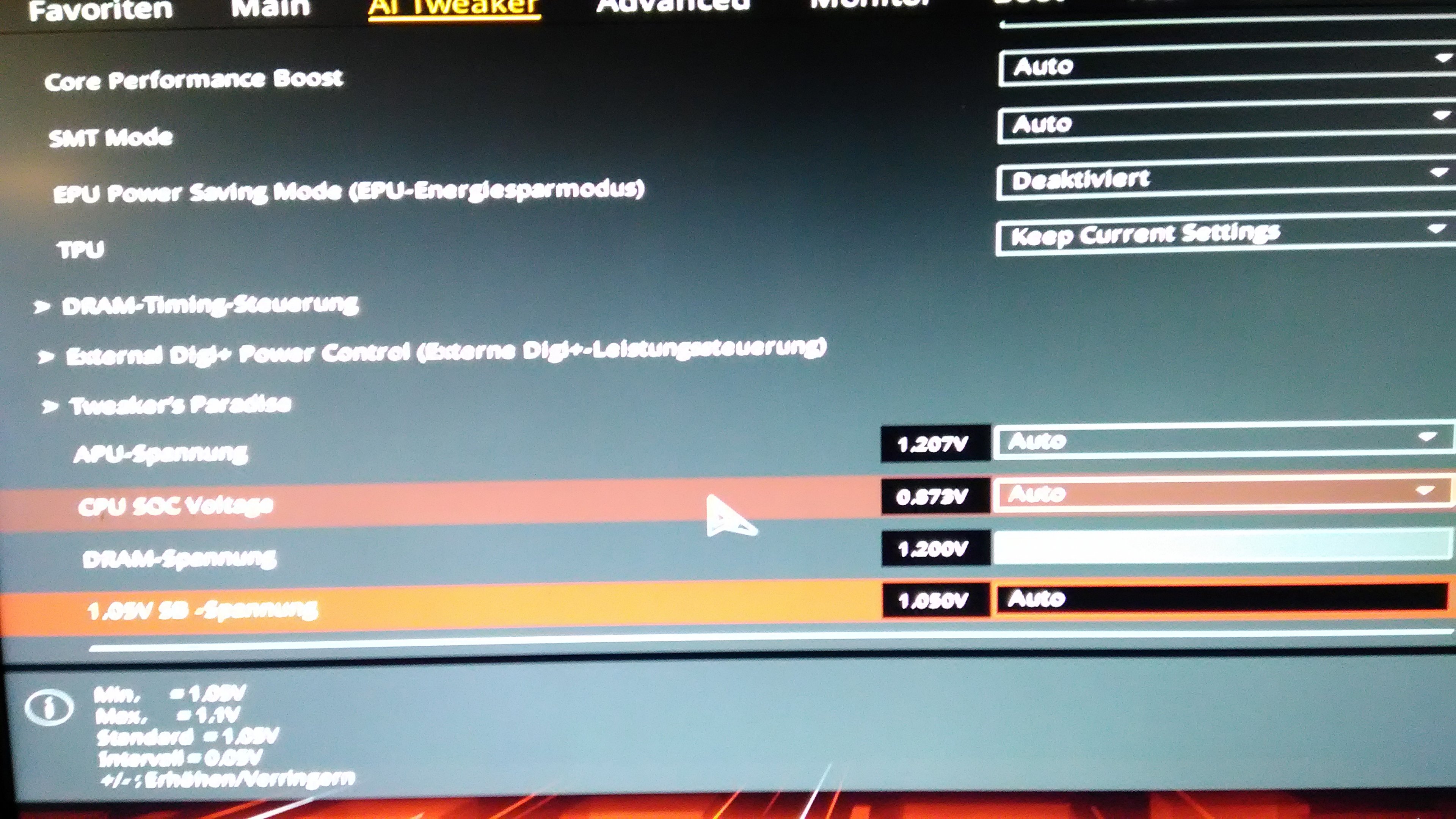 Hier noch meine Einstellungen aus dfem UEFI, wie gesagt, ich kann nicht manuell übertakten, der Punkt ist ausgegraut und kann nicht geändert werden, egal ob ich oben auf Auto oder manuell stelle.