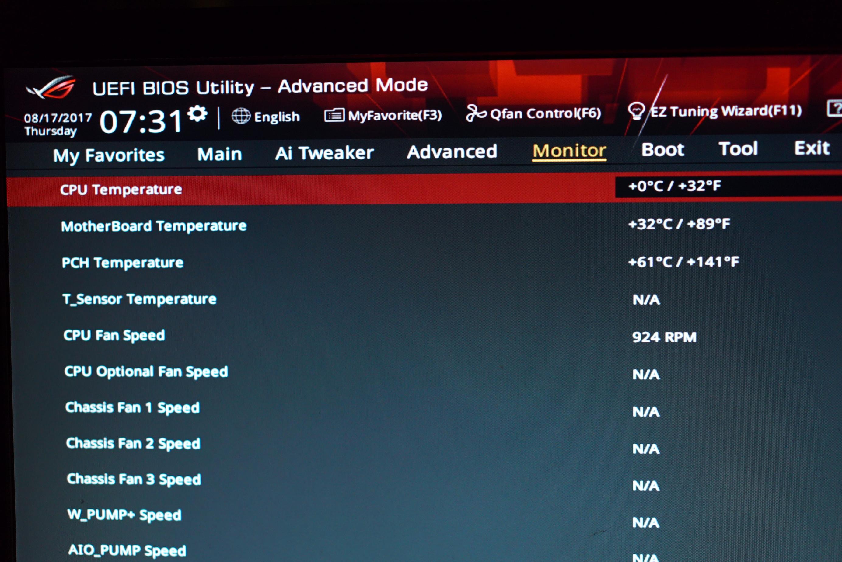 Erstmal Hallo. Mein Problem mag komisch erscheinen aber bei mir sind die Temperaturen der CPU unrealistisch niedrig. Und zwar wird mir im Bios wie auch überall anders 0-1 Grad celcius(32 F) im Idle Zustand angezeigt. (zum auslesen in Windows hab ich HwMonitor benutzt und Ryzen Masters). Zuerst dachte ich die Temperaturen werden nicht richtig angezeigt weil Treiber fehlen oder fehlerhaft sind, doch nach mehrmaligem überprüfen habe ich die Temperaturen auch im Bios angeschaut und dort wurde mir nur 1 grad angezeigt; die Mainboard Temperatur scheint allerdings realistisch zu sein mit ca 32 grad (86 F) idle. Die einzige Erklärung die mir einfällt ist, dass die grad Celsiu Temperatur anstelle von Fahrenheit gezeigt wird; oder, dass der Temperatursensor innerhalb der CPU kaputt ist.