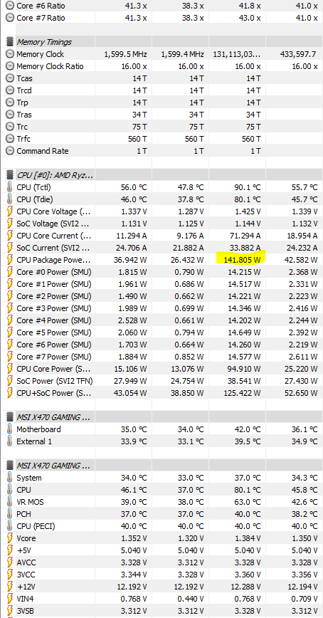 Auf dem 2. Bild ist mir die "CPU Package Power" mit 141,805W max. aufgefallen. Ist das normal nach einem 5 minütigen Prime95 Test?