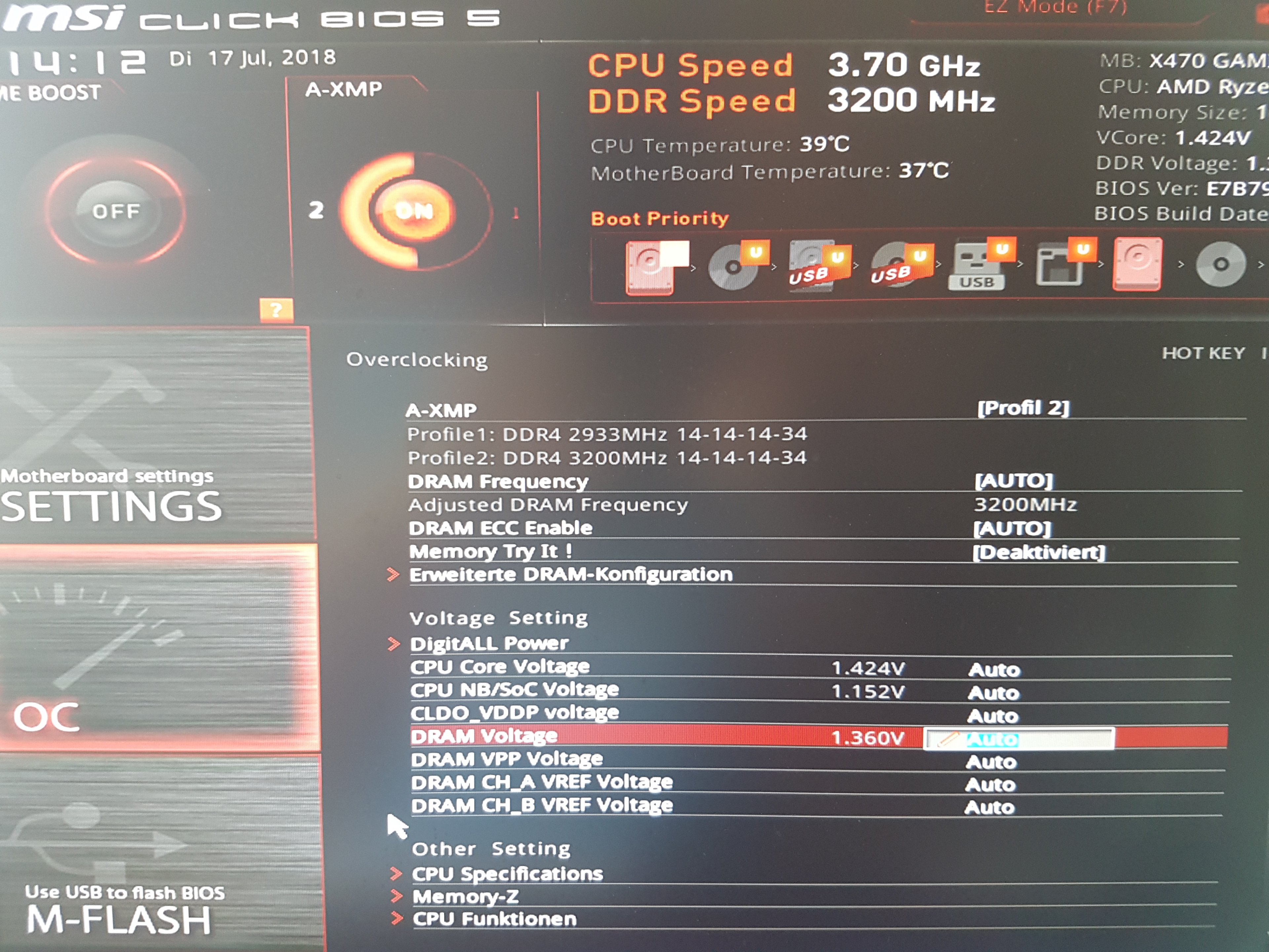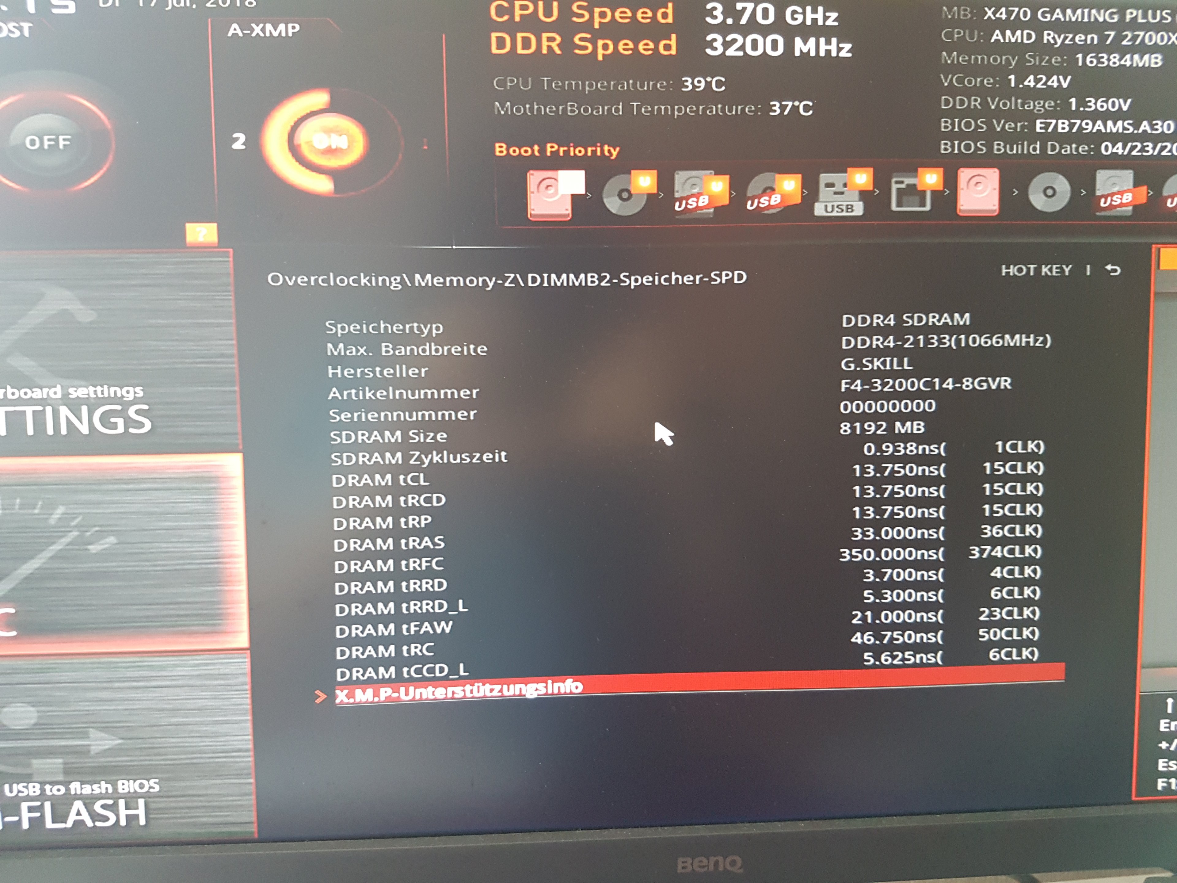 Gut jetzt bin ich ins Bios und habe wie von dir geschrieben den Performance Boost + XMP deaktiviert.