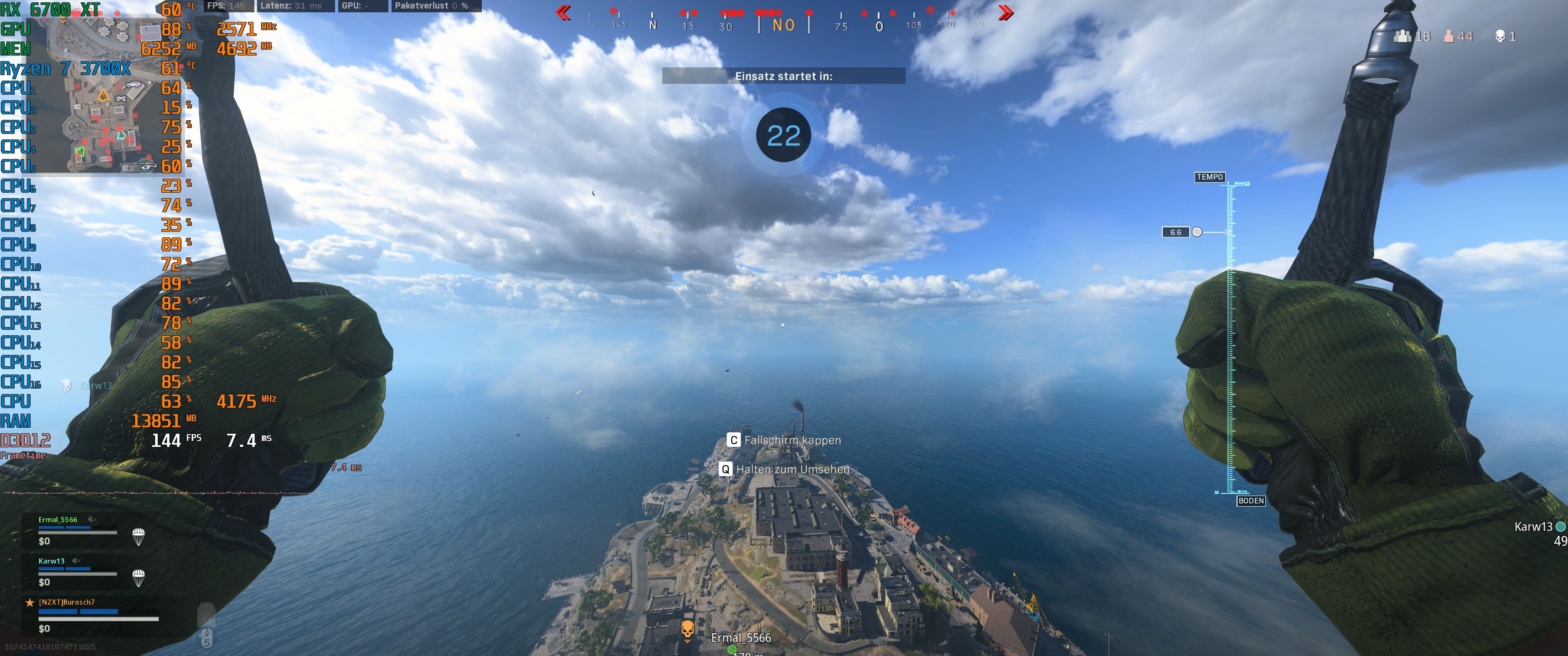 Die Frametimes sehen eigentlich in Ordnung aus (benutze auf jeden Fall NICHT den Frameratelimiter in den warzone optionen. Der macht die Frametimes unrunder bei AMD. Also mach maximal frames unbegrenzt)Burosch7 schrieb:Aber jetzt allein nur vom Ram ist das normal das der knapp bei 15Gb ist?
