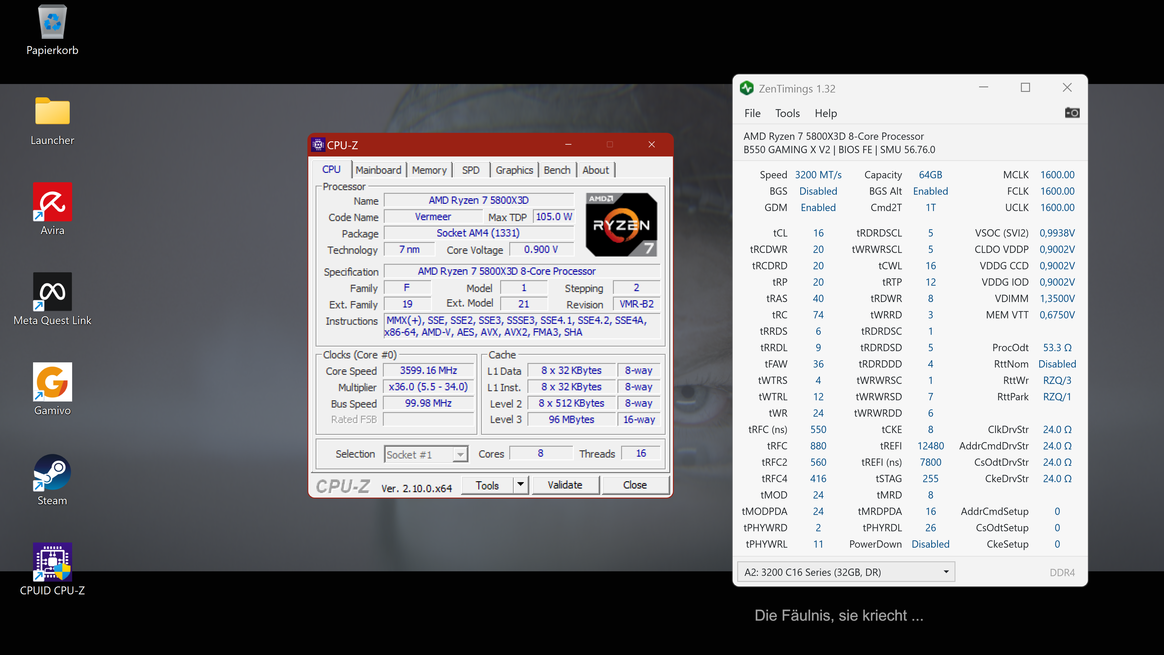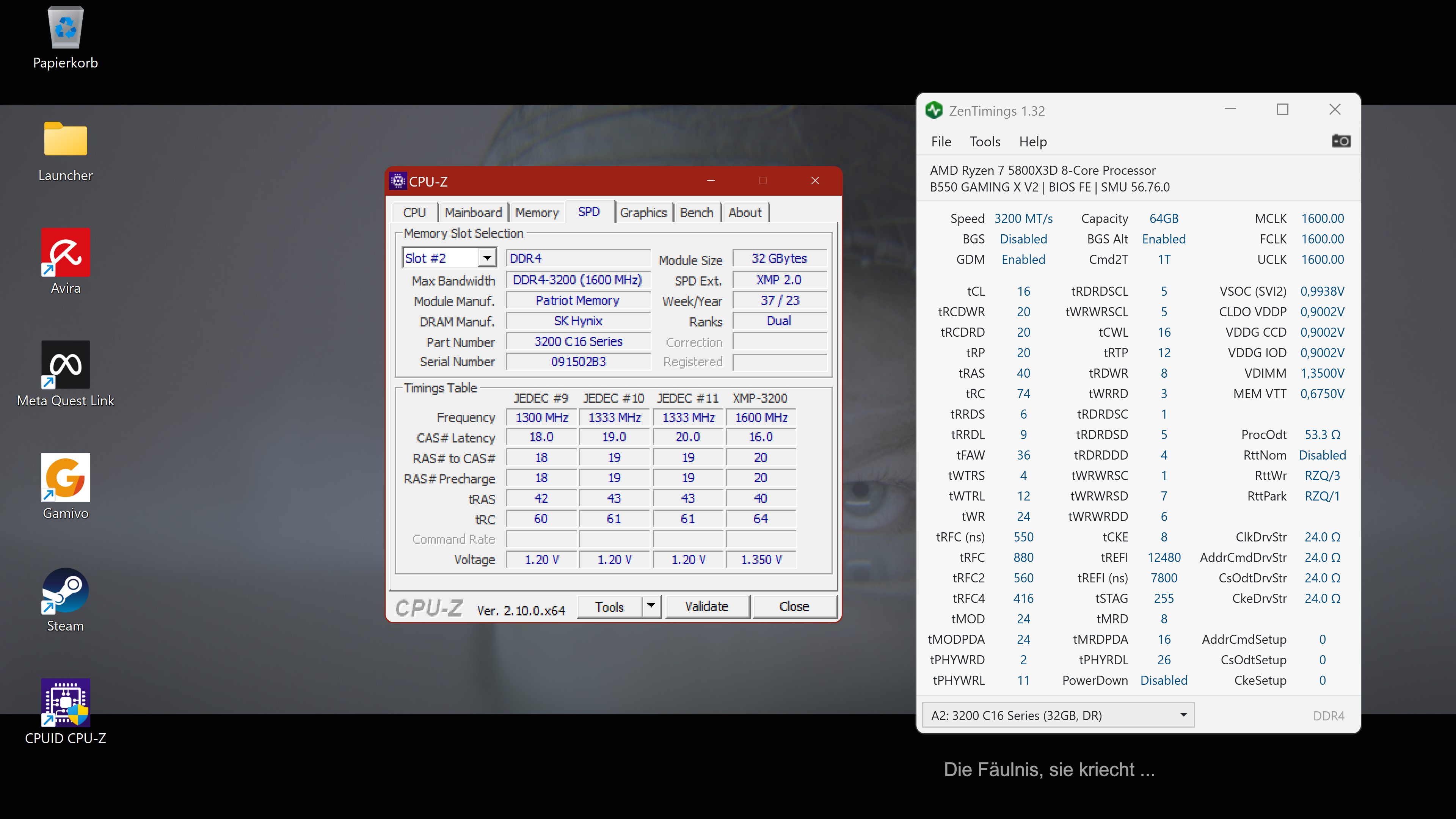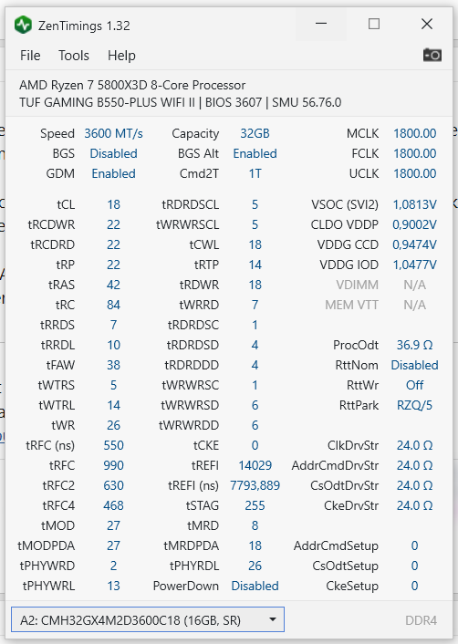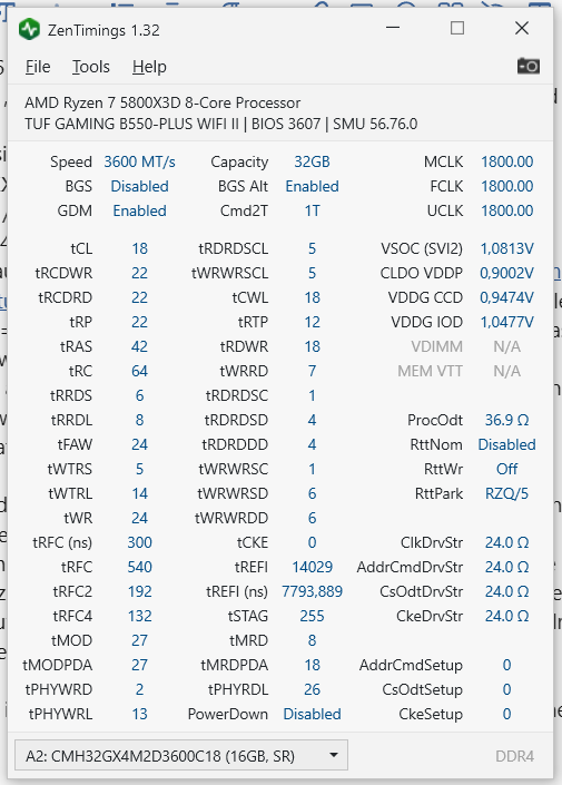 Kleiner Hinweis an dieser Stelle nochmal zum Thema Ram. Sobald man > 3200 Mhz nutzt, erhöht sich die SOC Spannung also VSOC der CPU (da der Memory Controller mehr Energie benötigt um den höhreren FCLK zu packen). Die VSOC liegt auch im Idle an und fĂŒhren bei meinem 5600X zu durchgehend 10W höherer Leistungsaufnahme. Das dĂŒrfte sich daher auch auf die Temps im Idle auswirken. Gerade beim X3D dĂŒrfte zudem der höhere Ram Takt kaum viel Performance bringen. Ich wĂŒrde mal versuchen die CPU mit 3200 Mhz Ram und dem Default VOSC zu betreiben.xteemii schrieb:RAM Stick Nr. 1: