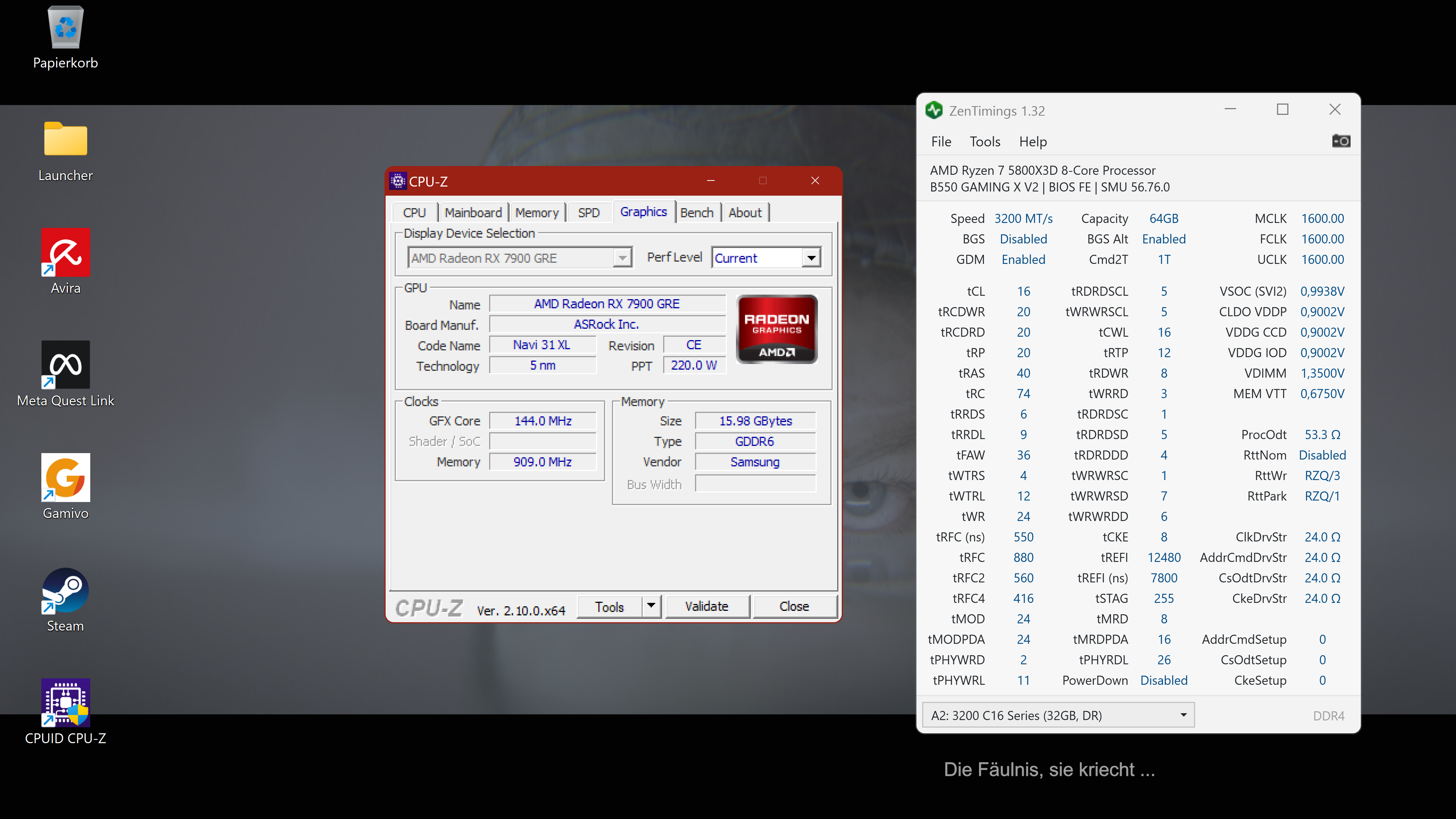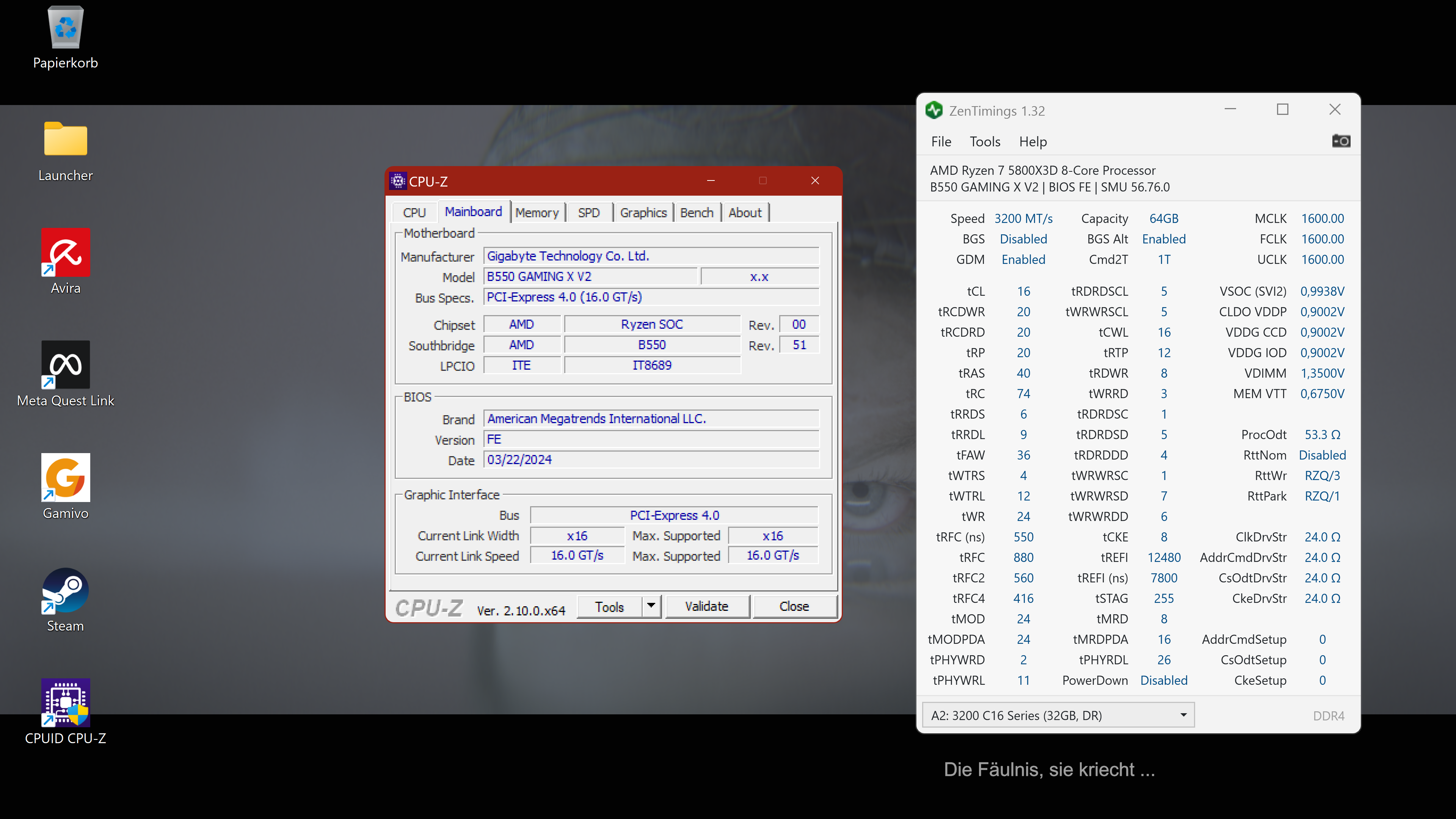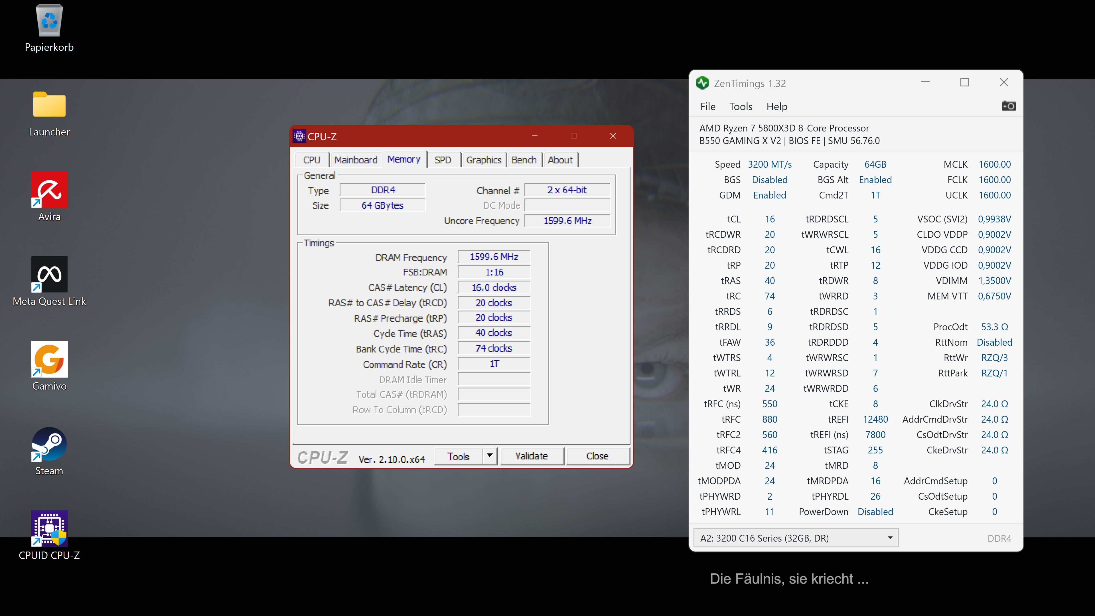 Kleiner Hinweis an dieser Stelle nochmal zum Thema Ram. Sobald man > 3200 Mhz nutzt, erhöht sich die SOC Spannung also VSOC der CPU (da der Memory Controller mehr Energie benötigt um den höhreren FCLK zu packen). Die VSOC liegt auch im Idle an und fĂŒhren bei meinem 5600X zu durchgehend 10W höherer Leistungsaufnahme. Das dĂŒrfte sich daher auch auf die Temps im Idle auswirken. Gerade beim X3D dĂŒrfte zudem der höhere Ram Takt kaum viel Performance bringen. Ich wĂŒrde mal versuchen die CPU mit 3200 Mhz Ram und dem Default VOSC zu betreiben.xteemii schrieb:RAM Stick Nr. 1: