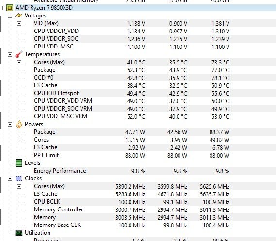 dort (dies gilt für ALLE CPUs, egal ob AMD oder Intel, egal ob Einsteiger oder sündhaft teure Oberklasse), selbst wenn du hundert 9850X3D testen könntest, die würden sich alle etwas anders verhalten bei Takt, Volt, Leistungsaufnahme, Temperatur.