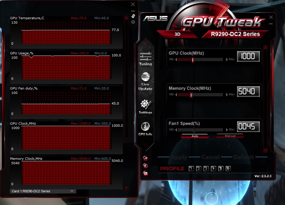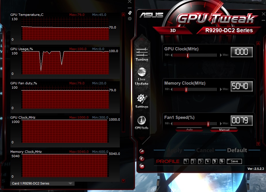 ASUS R9 290 DirectCU II OC 4GB, PCI-E 3.0 (4GB) (Mit 2 Lüftern),; Catalyst 14.4, Treiber 14.10