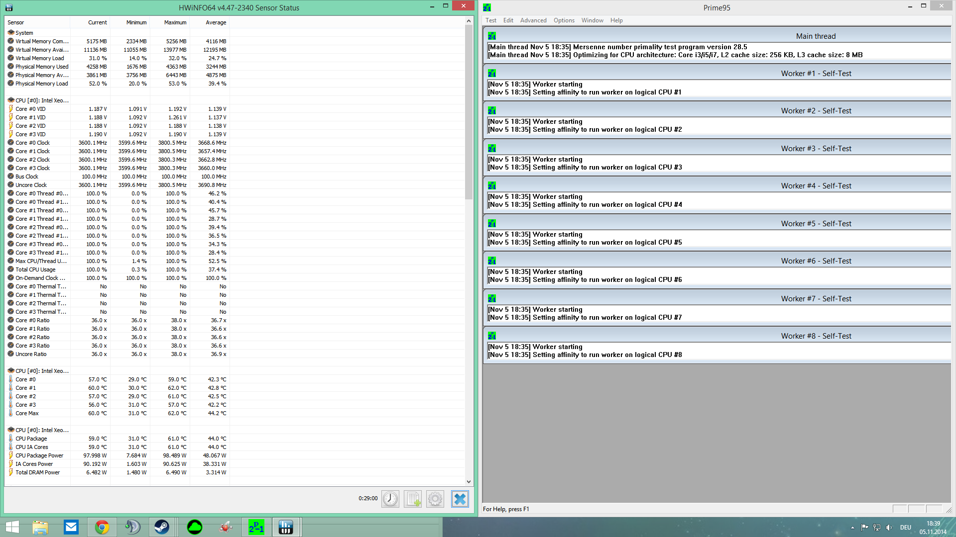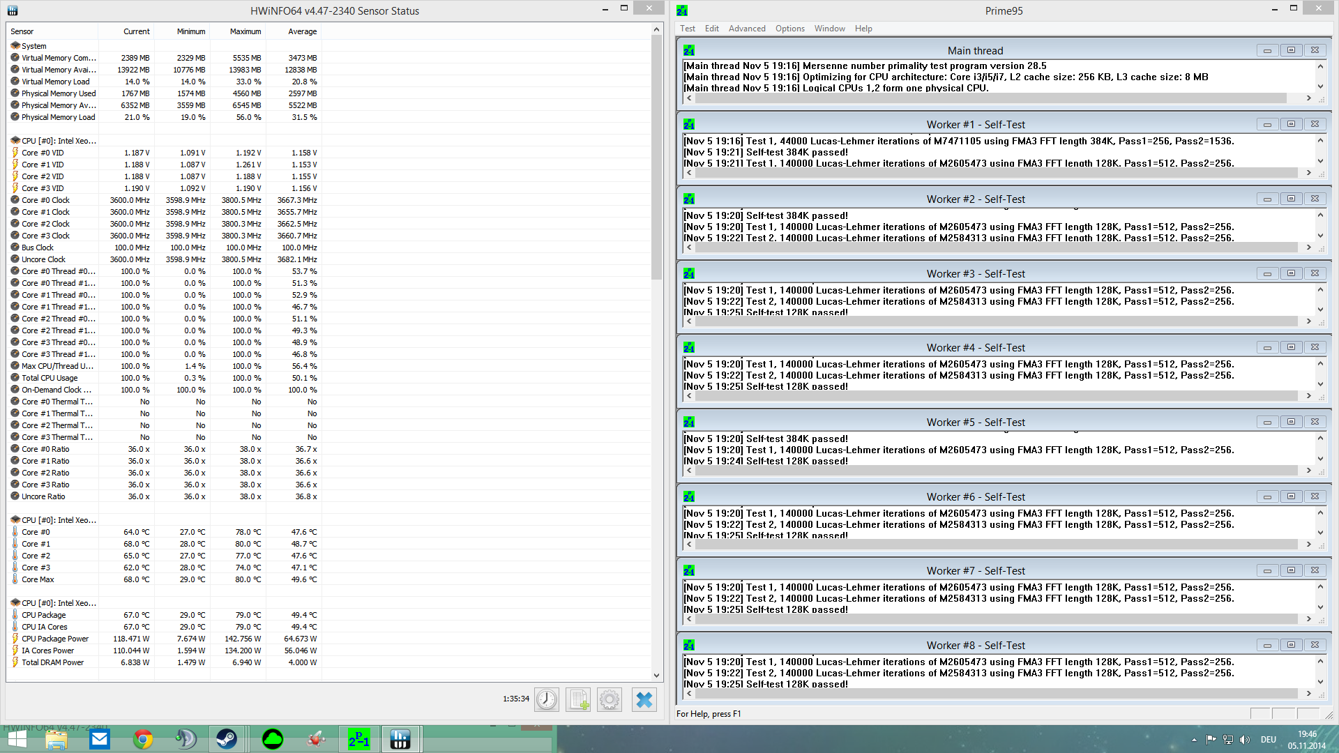 Nicht persönlich nehmen aber, nochmal das Ganze unter Maximaler Lastgenerierung (mit Prime 95 "wie bereits erwähnt")