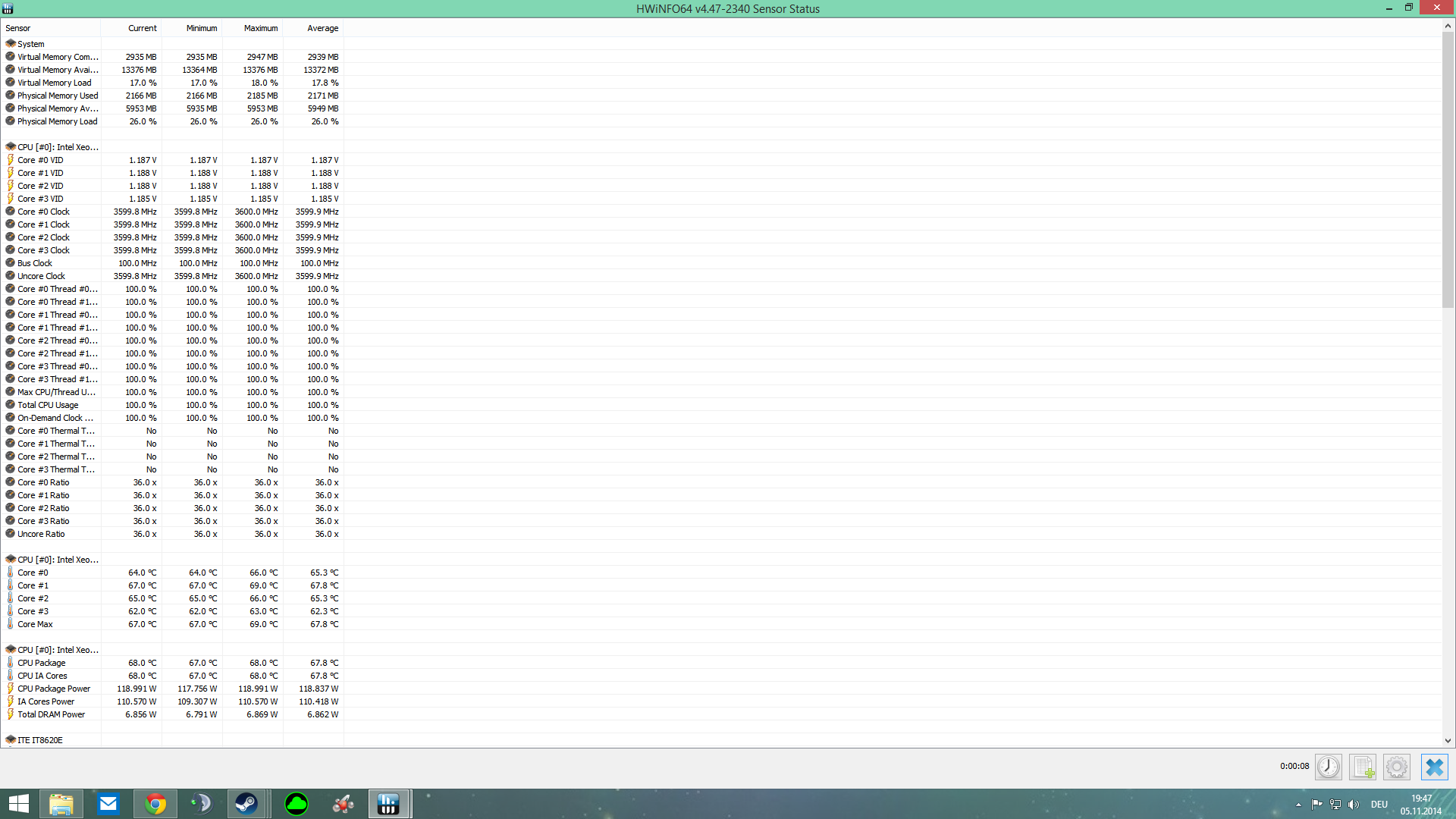 Bei den Datenblättern von Intel ist ersichtlich das dieses Xeon Model maximal 100° im Dauerbetrieb haben darf.