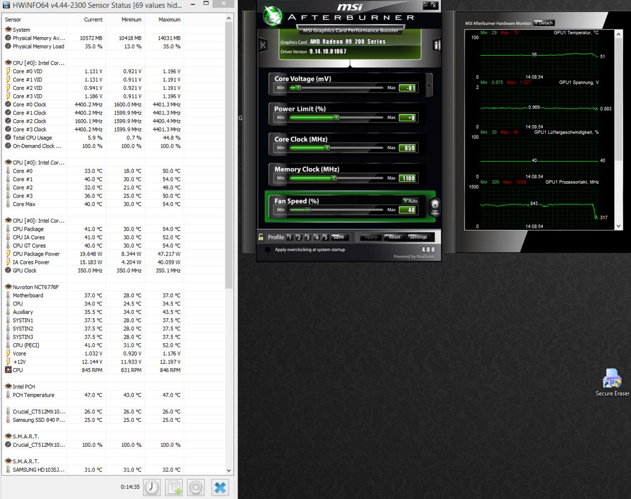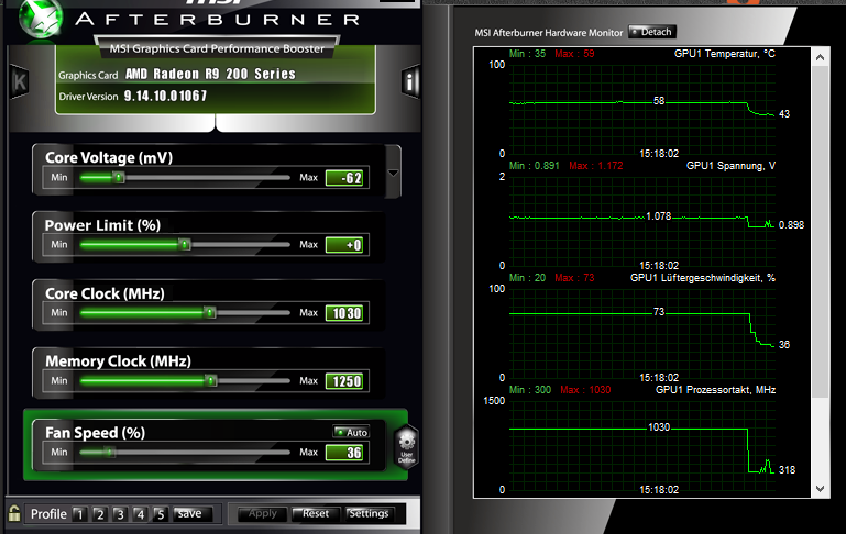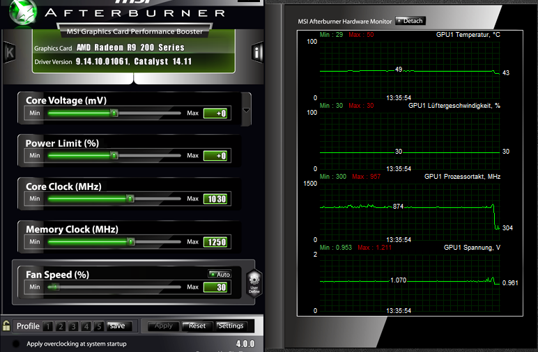 Lüfter/Kühler blitzen, 40% besagen GPU um die 70°C und SpaWas um die 60°C.