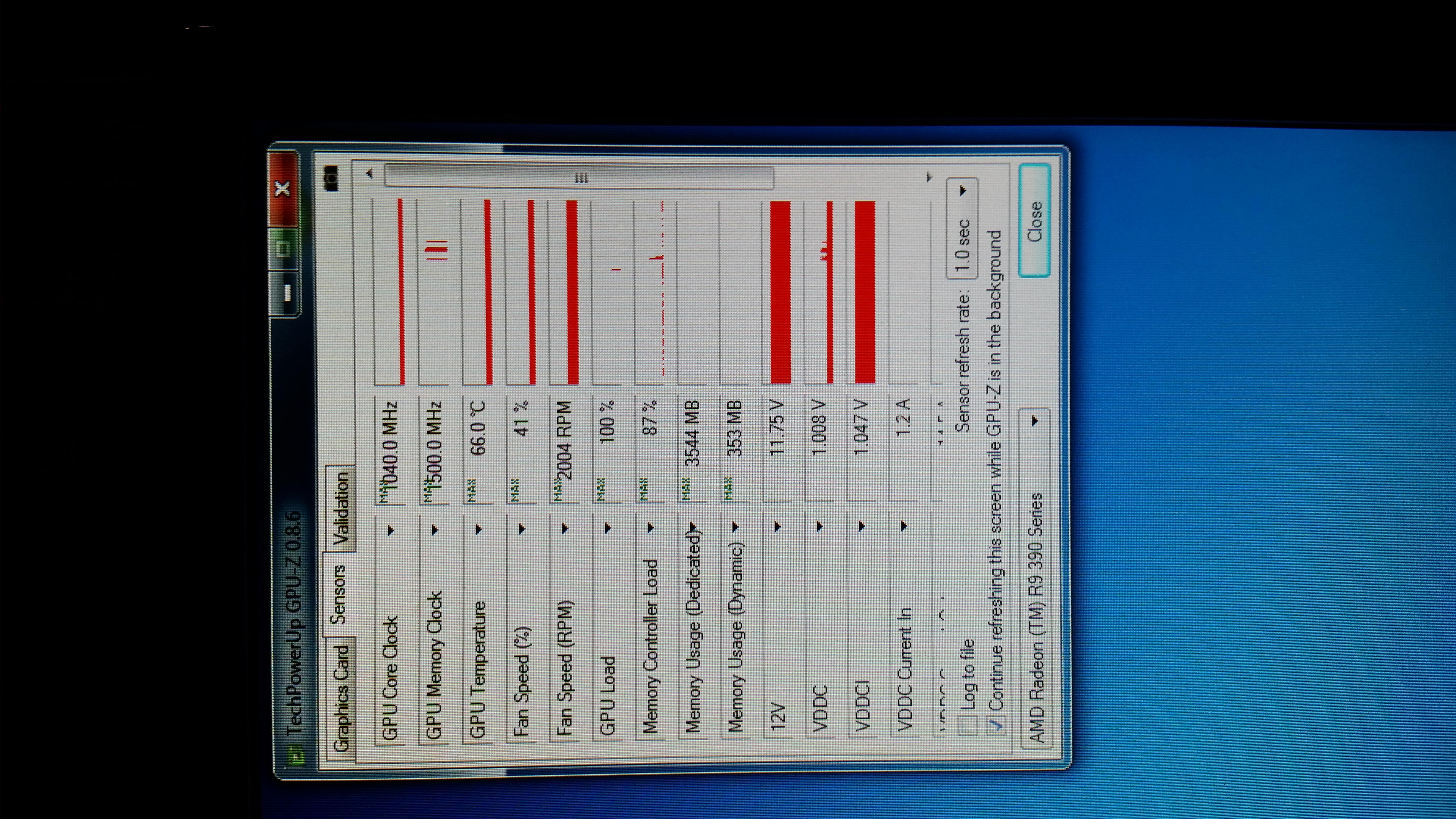 Als Beispiel meine R9 380 läuft mit 1,131 Volt und maximal +-90A bei 100% Auslastung beim Spielen.
