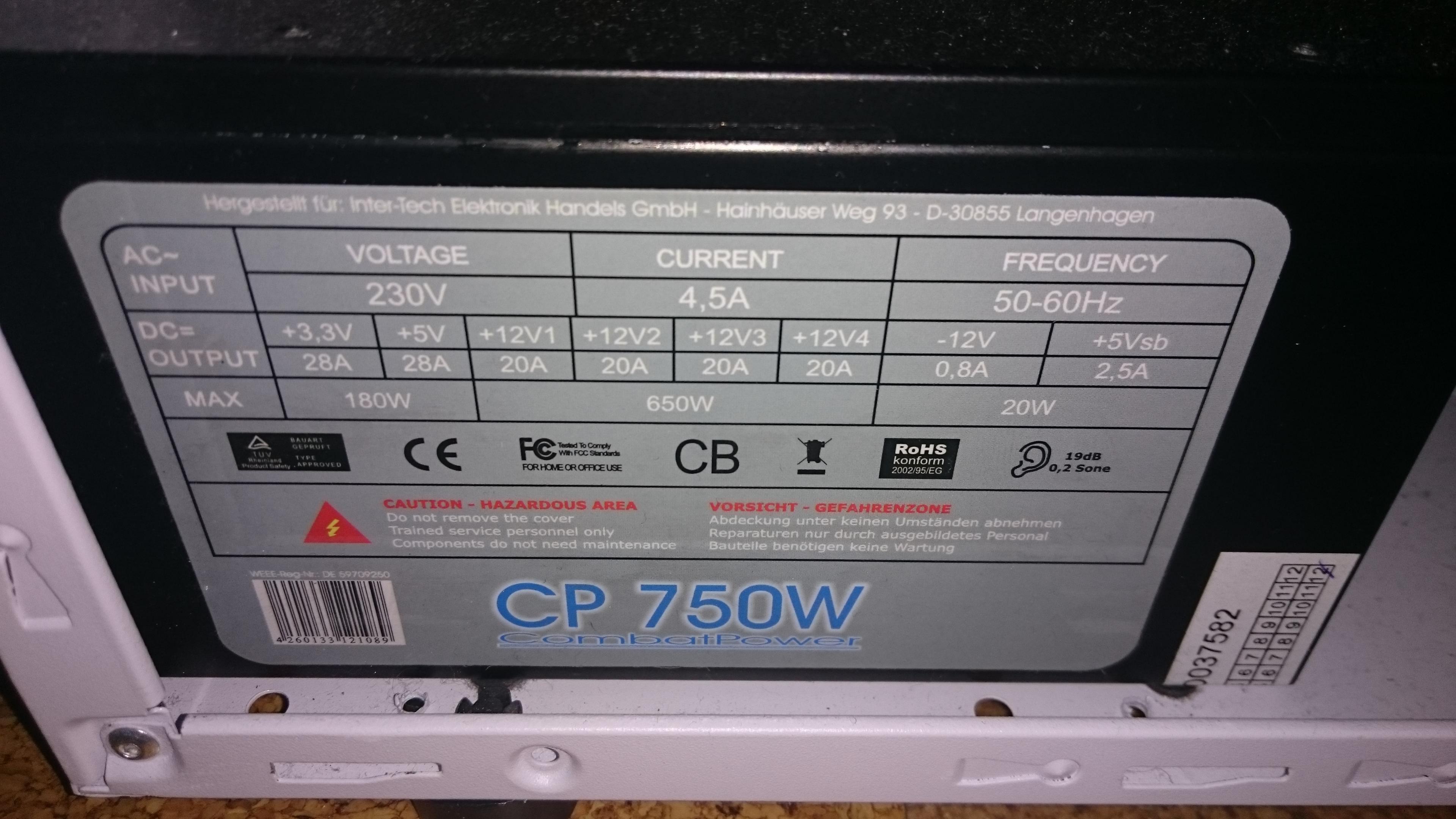 Es ist ein Billignetzteil, aber normalerweise sollten 750W ja genügen.