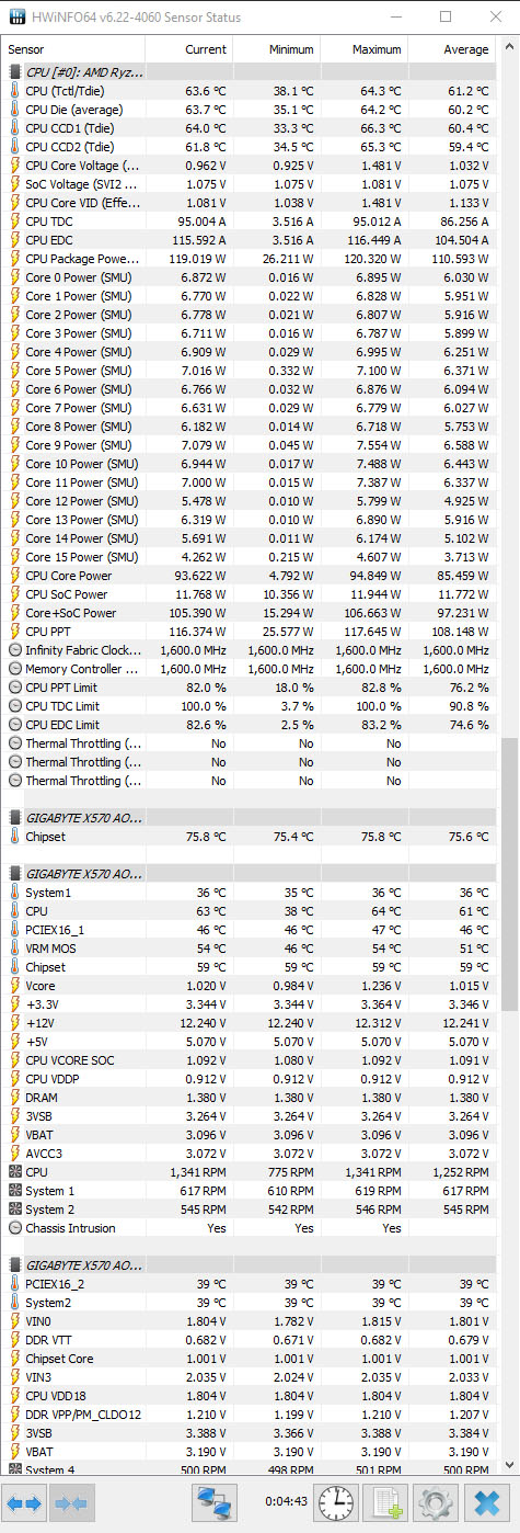 Der Rechner hat jetzt 15h ohne Probleme C4D/Arnold durchgerendert. Temps waren wie immer um die 70C, wobei es eine Max Temp von 78C gab. Anbei der HWMonitor Screenshot von den 15h C4D.