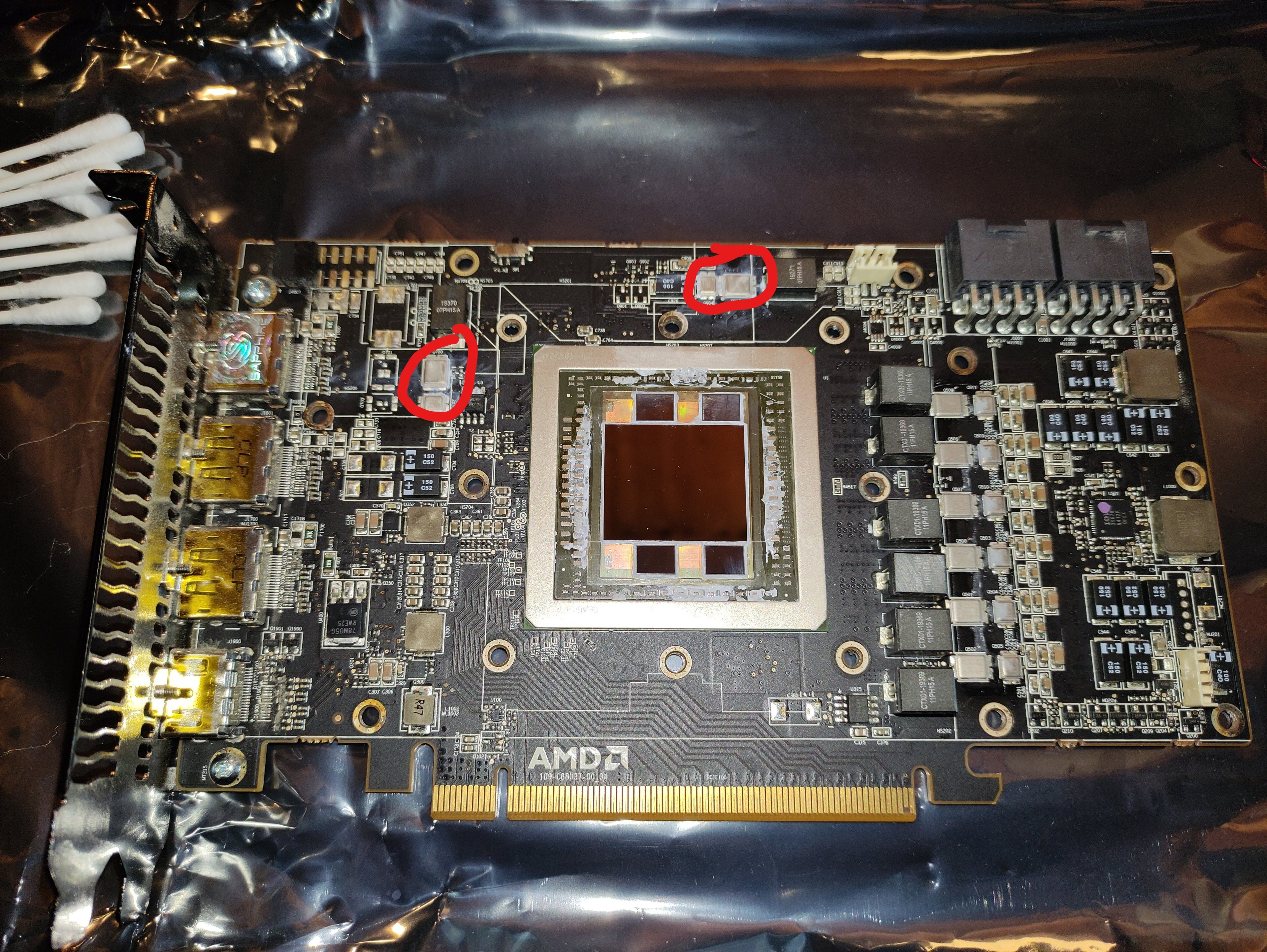 Der oben genannte PC gehört meinem Schwager. Ich habe seinen i5 2500k inkl. Ram und Board gegen die neuen Komponenten getauscht. Beim Zusammenbau habe ich ihm angeboten die WLP auf der R9 Fury gegen frische Kryonaut zu wechseln. Ich habe schon viele Repastes gemacht und bin eigentlich sichger darin. Ich habe den Kühler entfernt, die Paste mit dem Remover von Thermal Grizzly und Papiertüchern entfernt, neue Paste aufgetragen und den Kühler wieder montiert. So wie immer. Leider ist mir ein Pad zerbröselt, das habe ich dann auch duch WLP ersezt. Ist zwar nicht ganz korrekt, aber die Karte sollte auch nur bis zum Eintreffen der neuen RX6700XT laufen und dann hätte ich für den Weiterbetrieb neue Pads eingebaut.