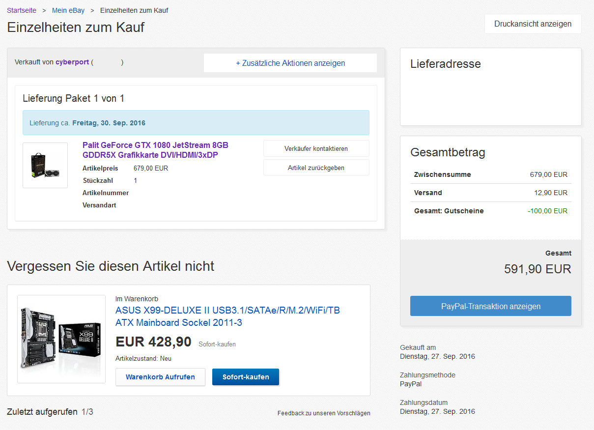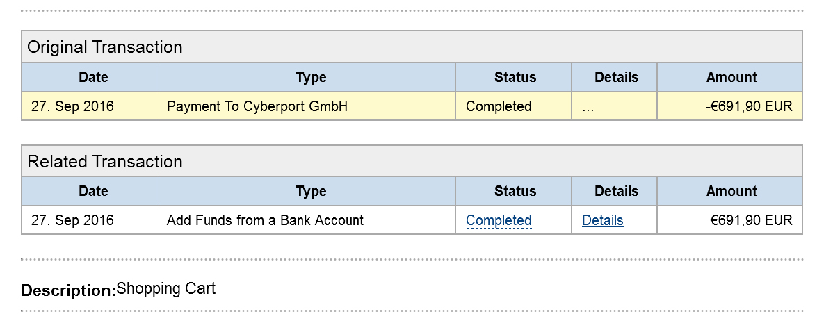 Ich warte nur noch auf eine Bestätigung meiner Bank aber ich vermute bereits das hier ordentlich was schief gelaufen ist und ich keine Ahnung habe ob der Fehler bei PayPal oder bei Ebay gelegen hat.