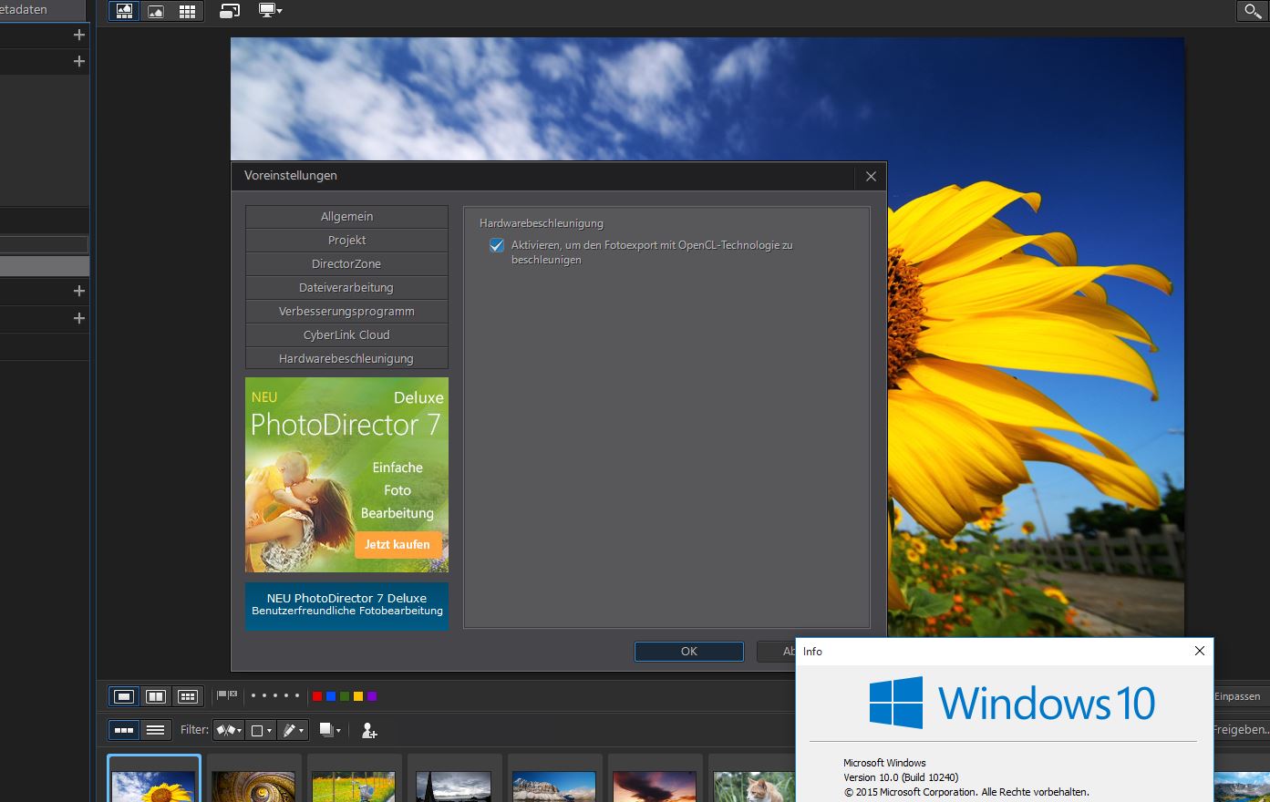 Meine Anwendungen: Cyberlink Photodirextor 6, DXO Optics Pro 9.5, und Vegas 13