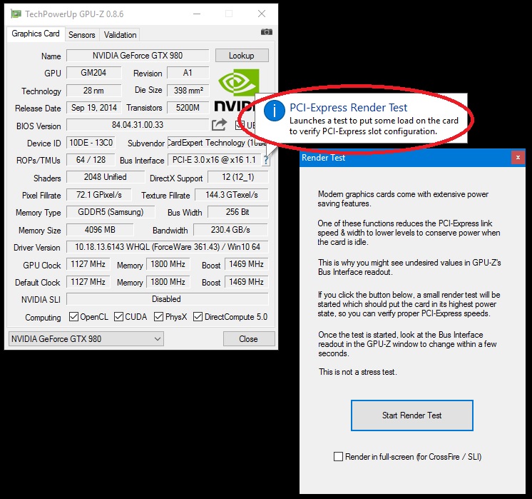Bei GPU-Z wird jedoch PCI Express 3.0 x16@x16 1.1 angezeigt, und bei sie nutzt aktuell: PCI Express x16 1.1, also weder 2.0 noch 3.0