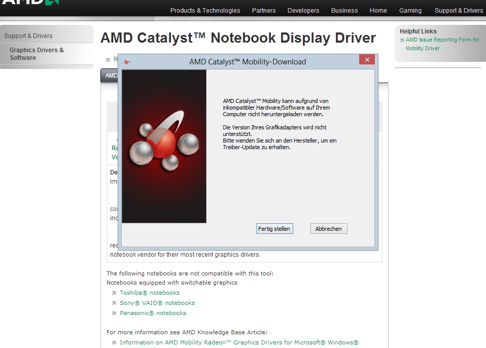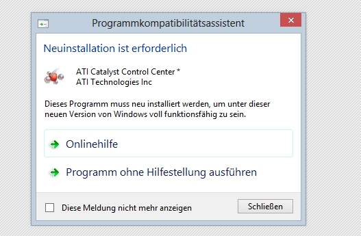 mein Laptop Acer Aspire 7745G hat eine ATI Radeon HD 5850 drinnen, das cataControCenter ding lief immer ohne Probleme, jetzt hab ich auf W8 geupgradet und jetzt geht der Grafiktreiber nicht mehr. Da steht aber eig die Installation war erfolgreich. Alles sei auf dem neusten stand. -.-