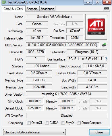 Im Geräte-Manager wird nur die Standard-VGA angezeigt, welche einem zum Zocken oder ähnlichem natürlich nicht viel bringt.