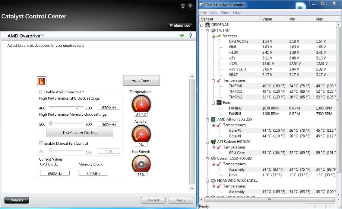 Weil sie auch bei offenem Deckel so warm wird, schließe ich mangelnde Kühlung als Hauptursache aus. Könnte es an meinem Netzteil liegen??? Ich habe irgendwo ergoogelt daß bei einem ein zu schwaches Netzteil der Grund für die große Wärmeentwicklung der HD5450 war. Aber das Enermax Eco 350W ist doch eigentlich dicke ausreichend - oder?