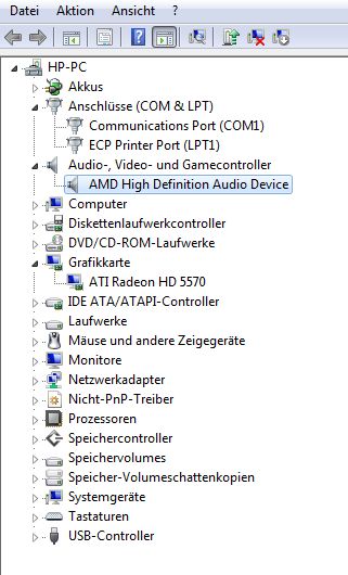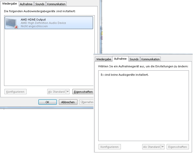 Unter Systemsteuerung-Sounds wird nur "AMD HDMI Output" angezeigt - sonst nichts.