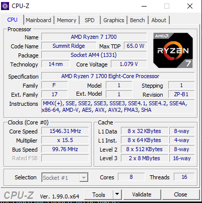 - Prozessor (CPU): AMD Ryzen 7 1700 Eight-Core Processor 3.00 GHz
