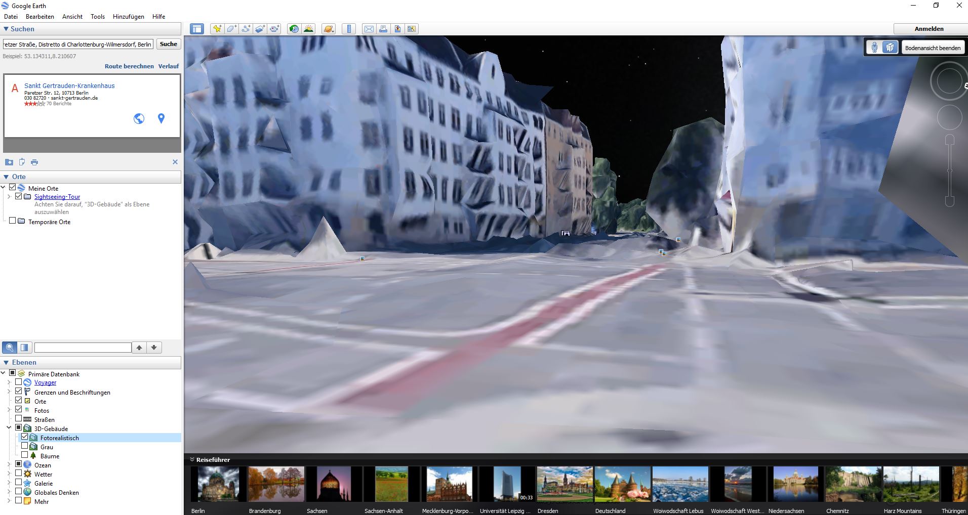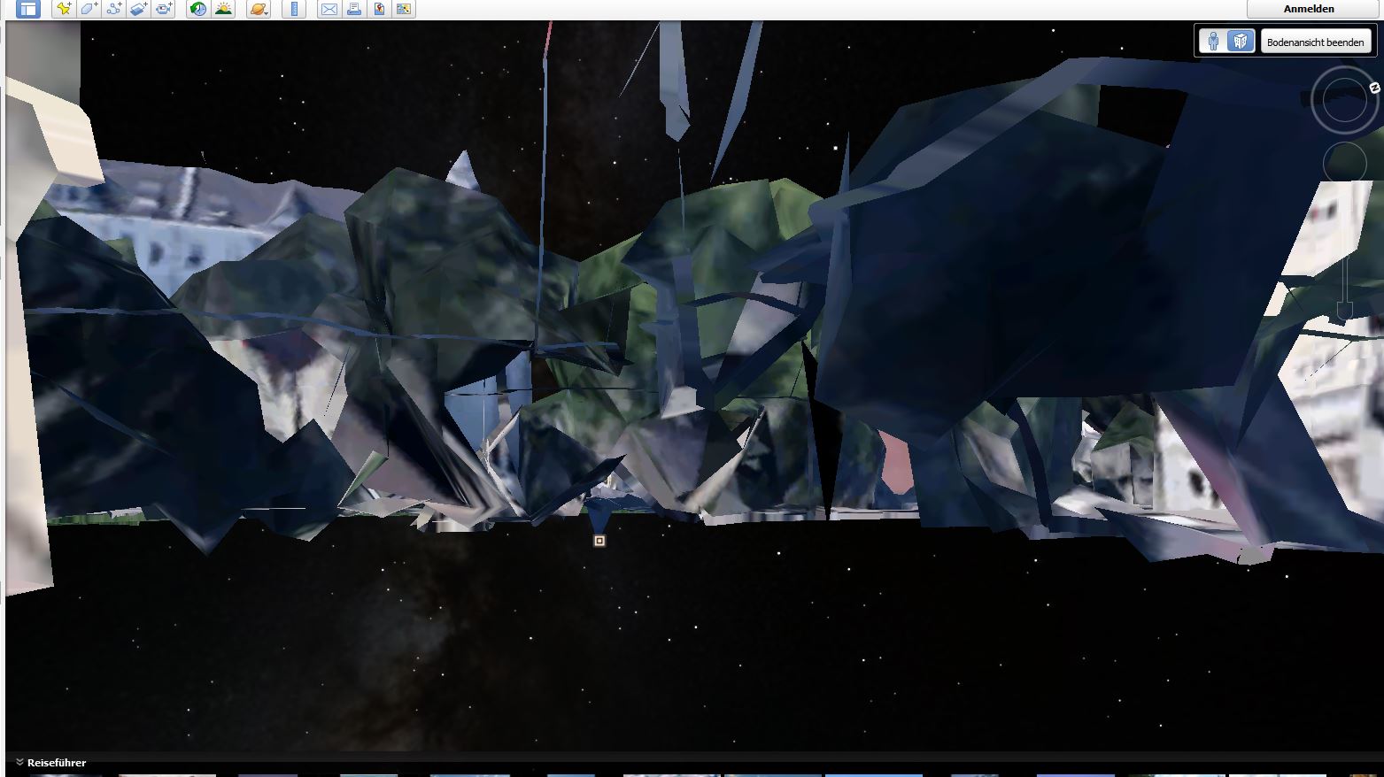 Habe gerade Google Earth installiert und so schaut bei mir die Bodenansicht aus: