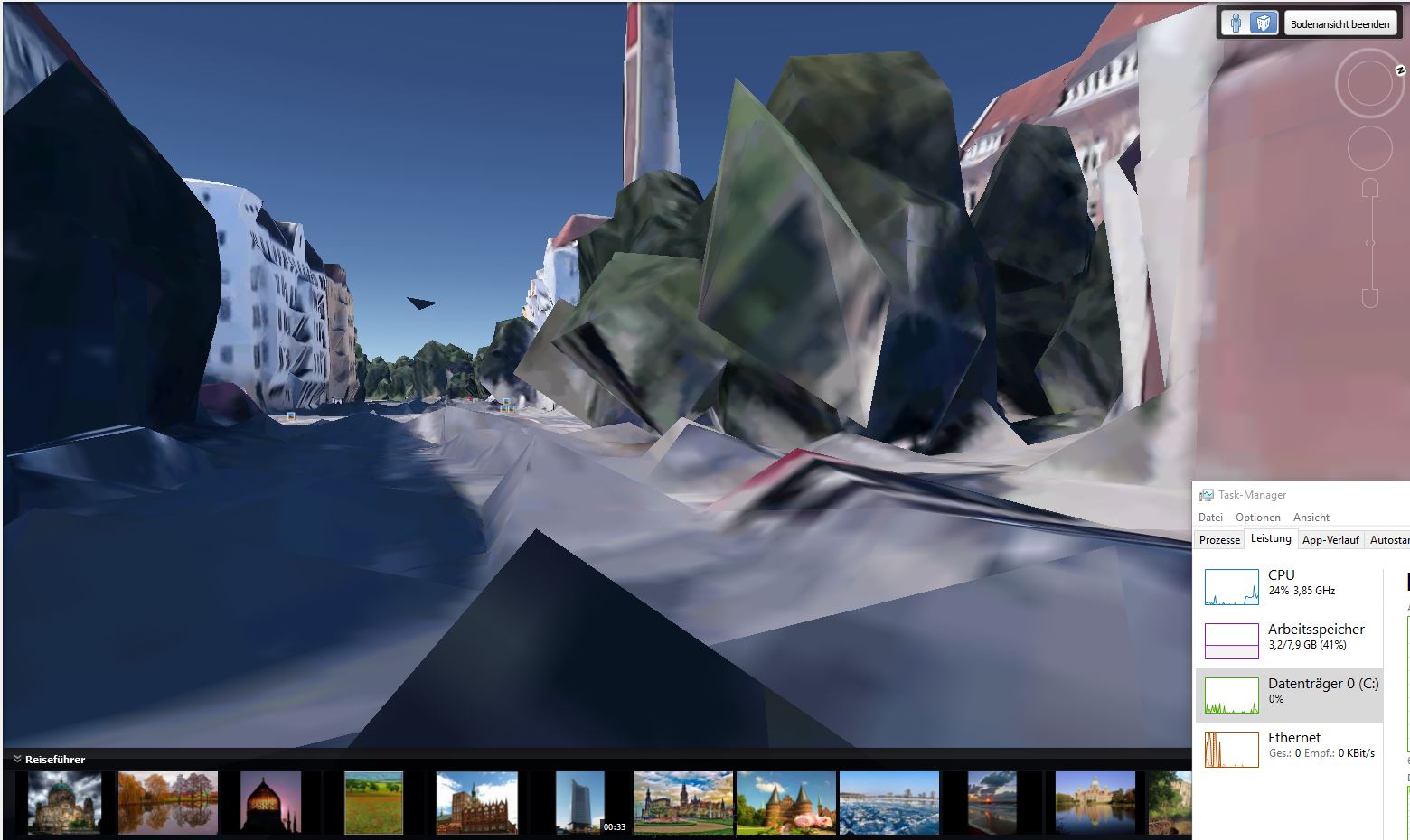 Ist das normal? Sieht mehr nach nem Starwars-Spiel von 1980 aus... Der Rechner stottert nicht, bei Streetview werden die Fotos normal dargestellt. Oder muss ich irgendwelche Einstellungen ändern?